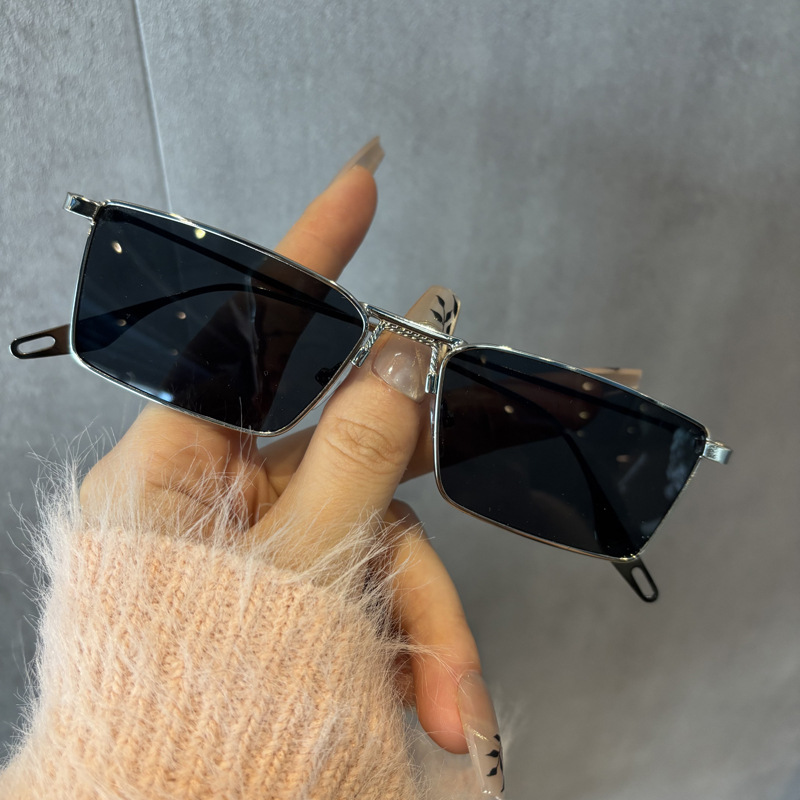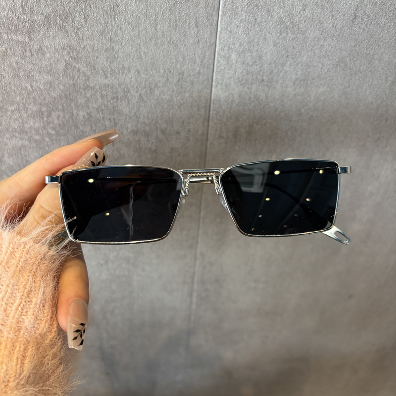 silver frame black and grey lens