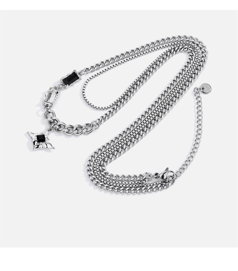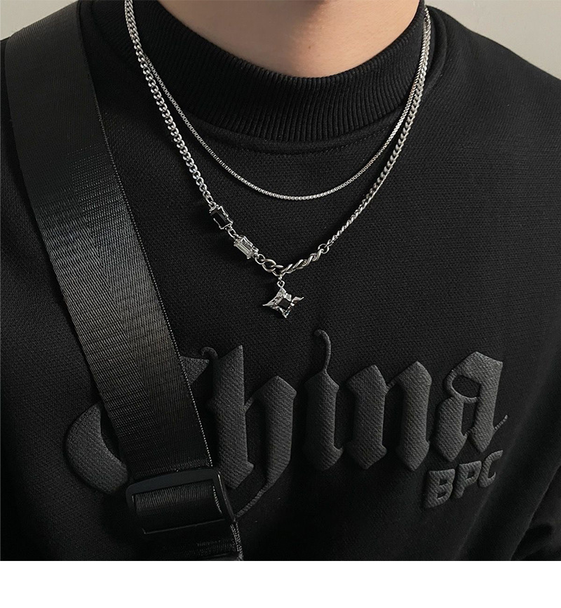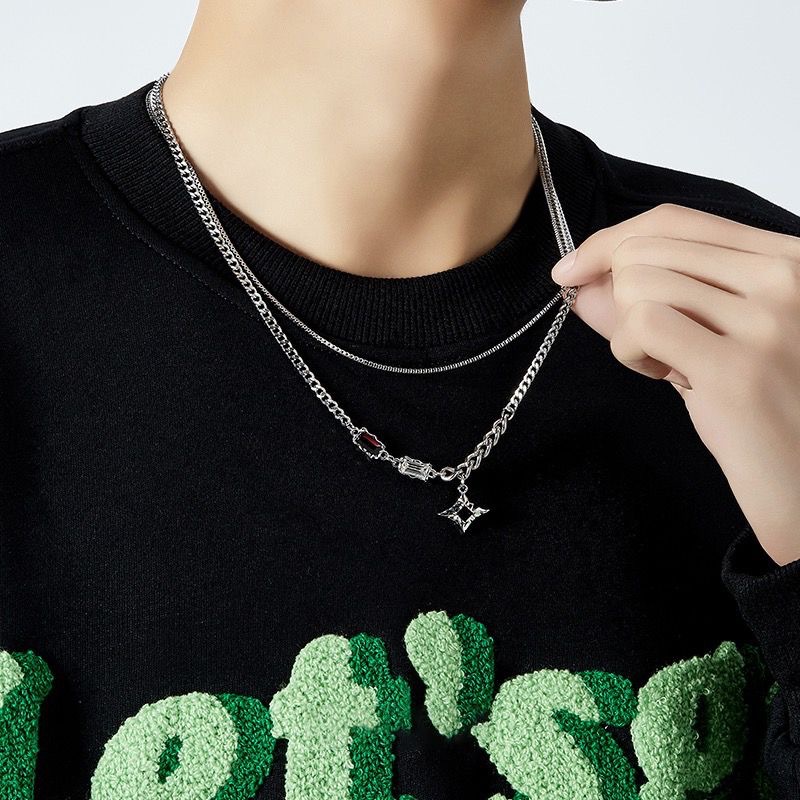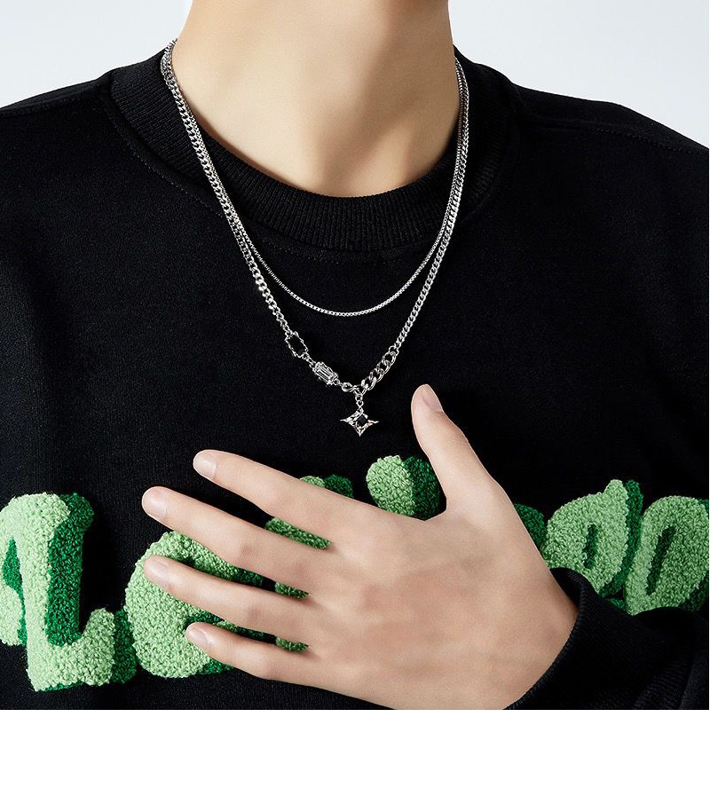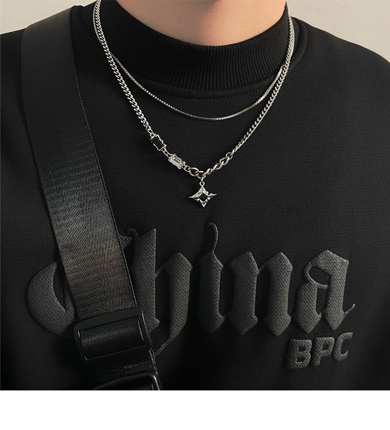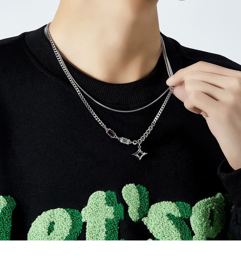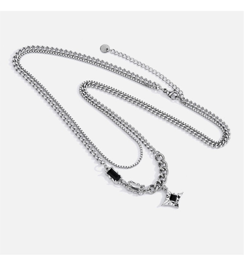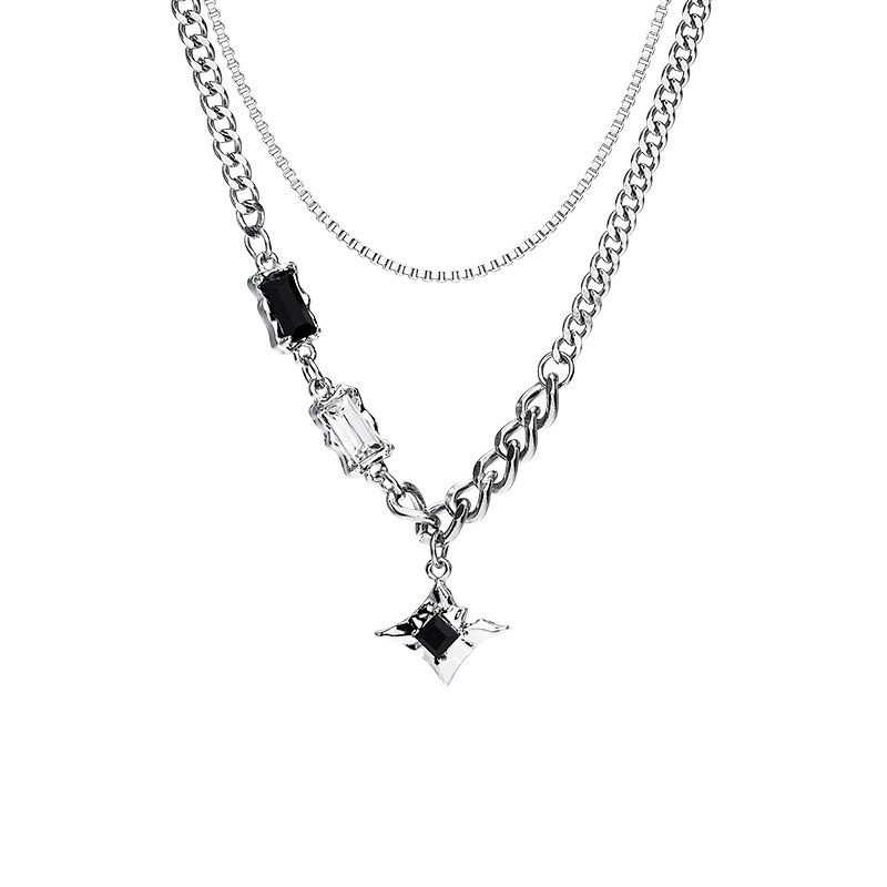 a3-13 black diamond eight-pointed stars double-layer necklace for men (titanium steel chain)