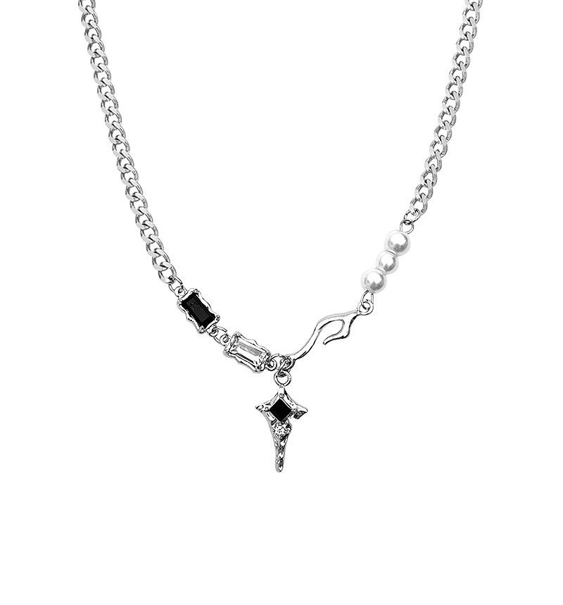 a3-14 black diamond eight-pointed stars pearl necklace for women (titanium steel chain)