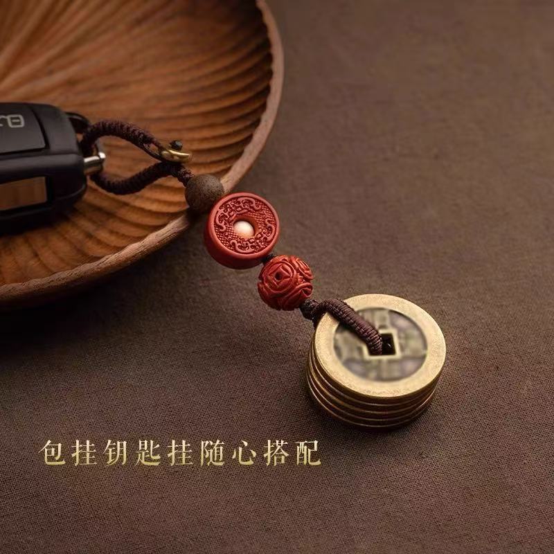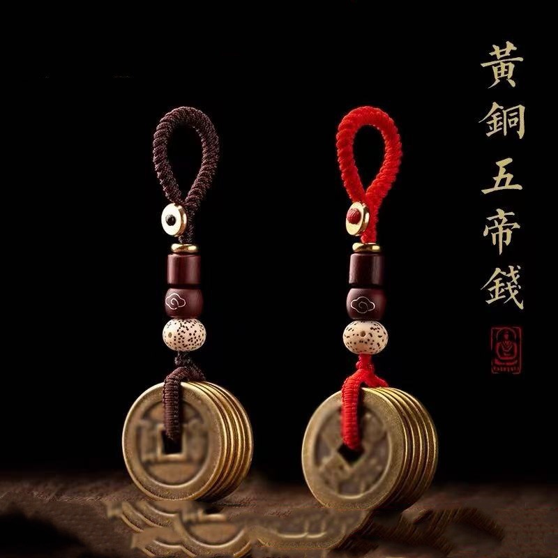 red rope-five emperors copper coins keychain
