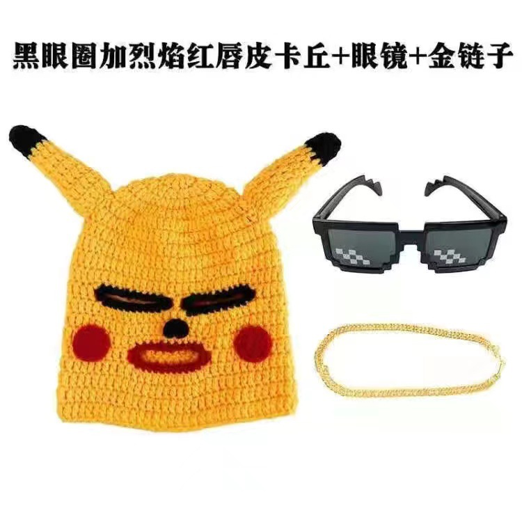 pikachu headcover + mosaic sunglasses + daikin necklace + props cigar