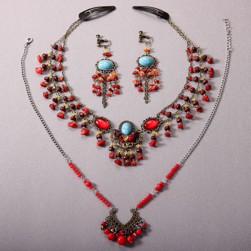 v-shaped red bead-forehead ornament necklace dual-use