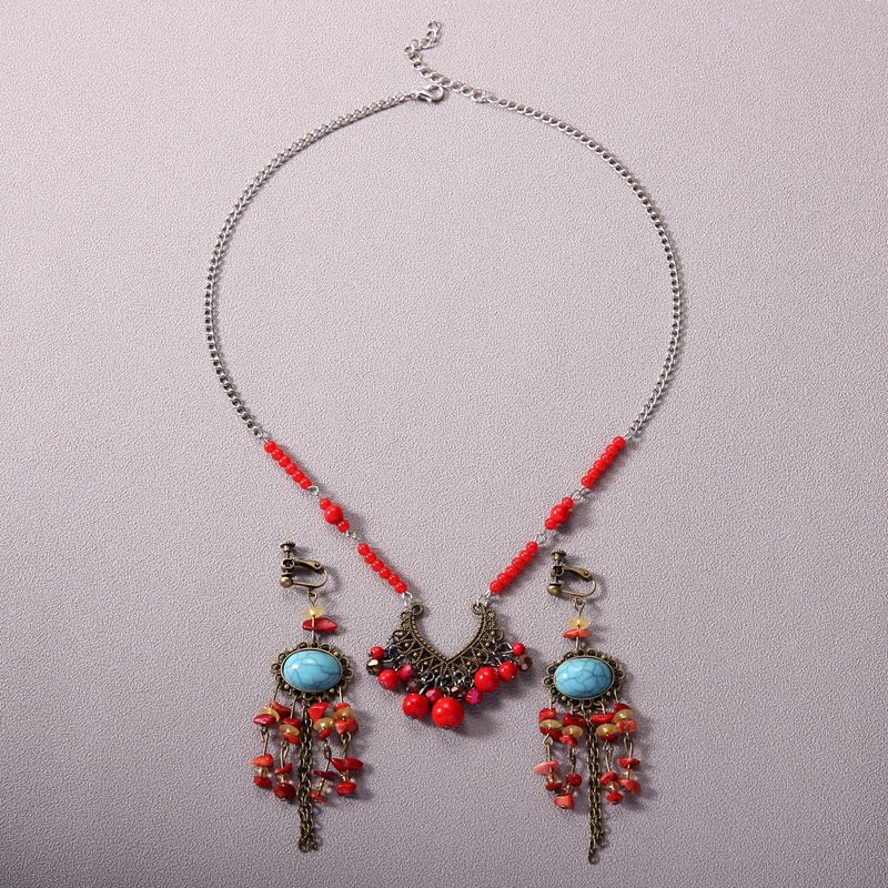 v-shaped red bead two-piece set-ear clip