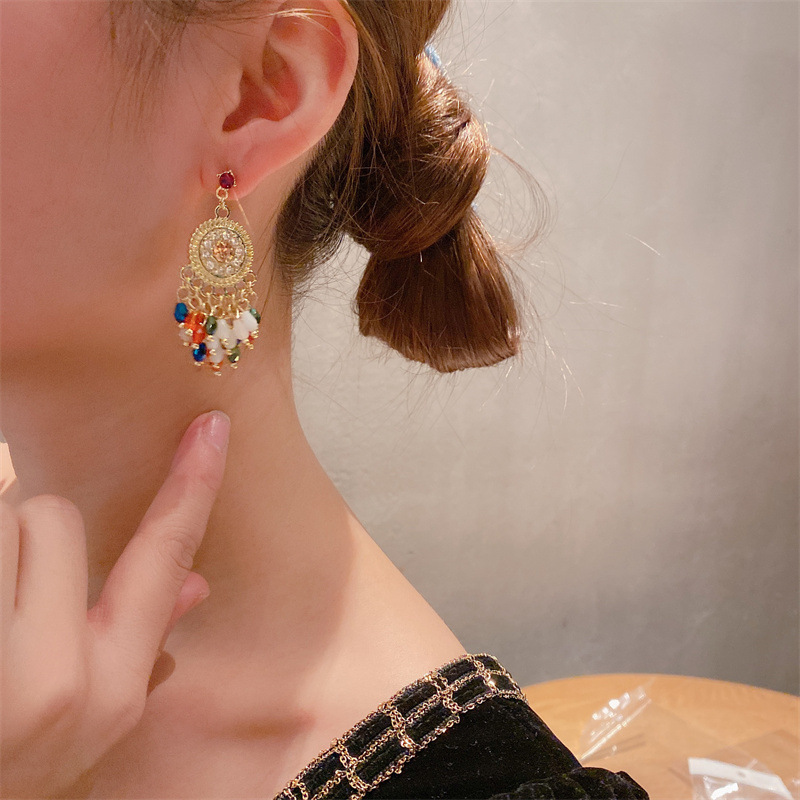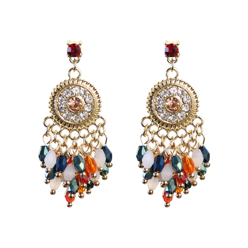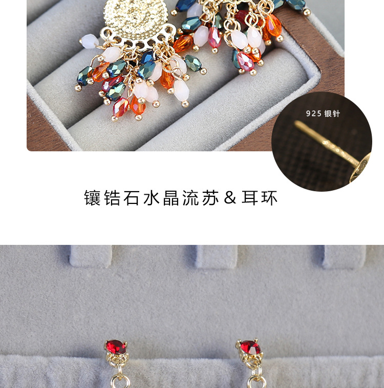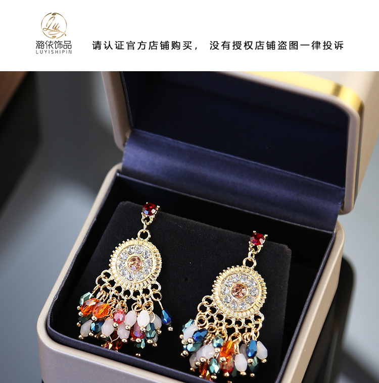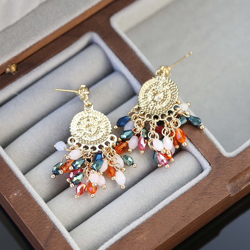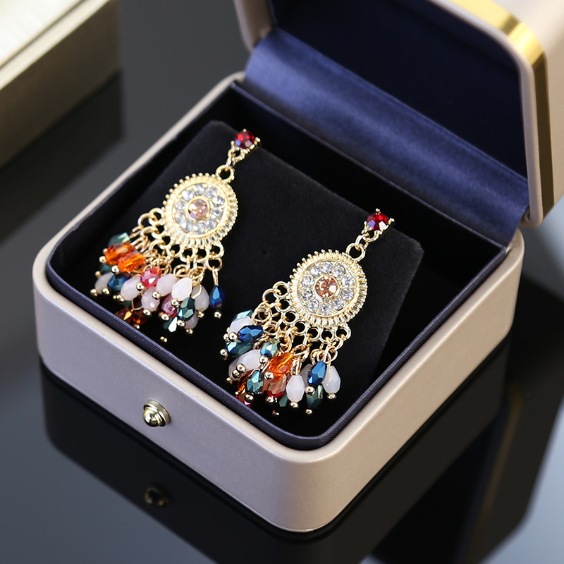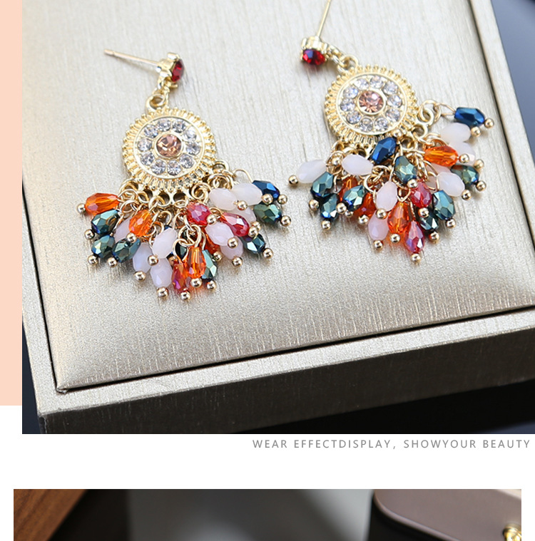 color crystal tassel earrings