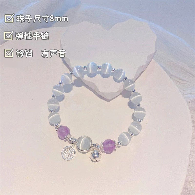 cat eye lime moonlight bell blessing card bracelet
