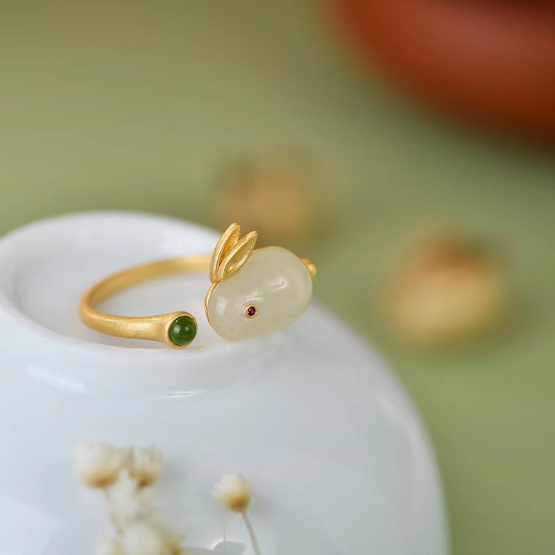 diamond jade hare open ring