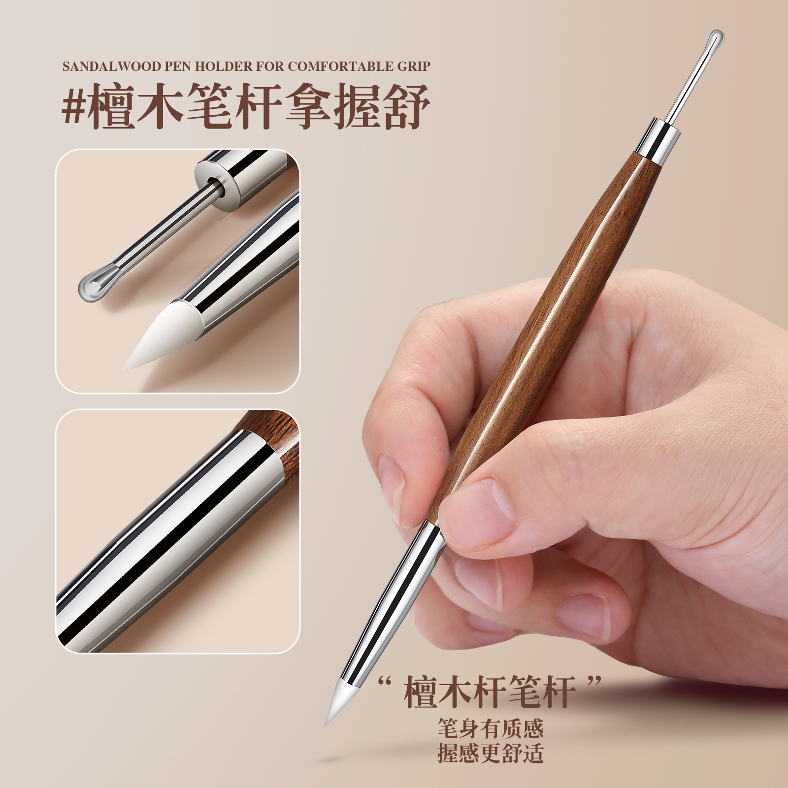 manicure double-headed multi-functional carved pen japanese-style glue taking frictioning embossed painted powder rubbing ebony pen holder manicure implement