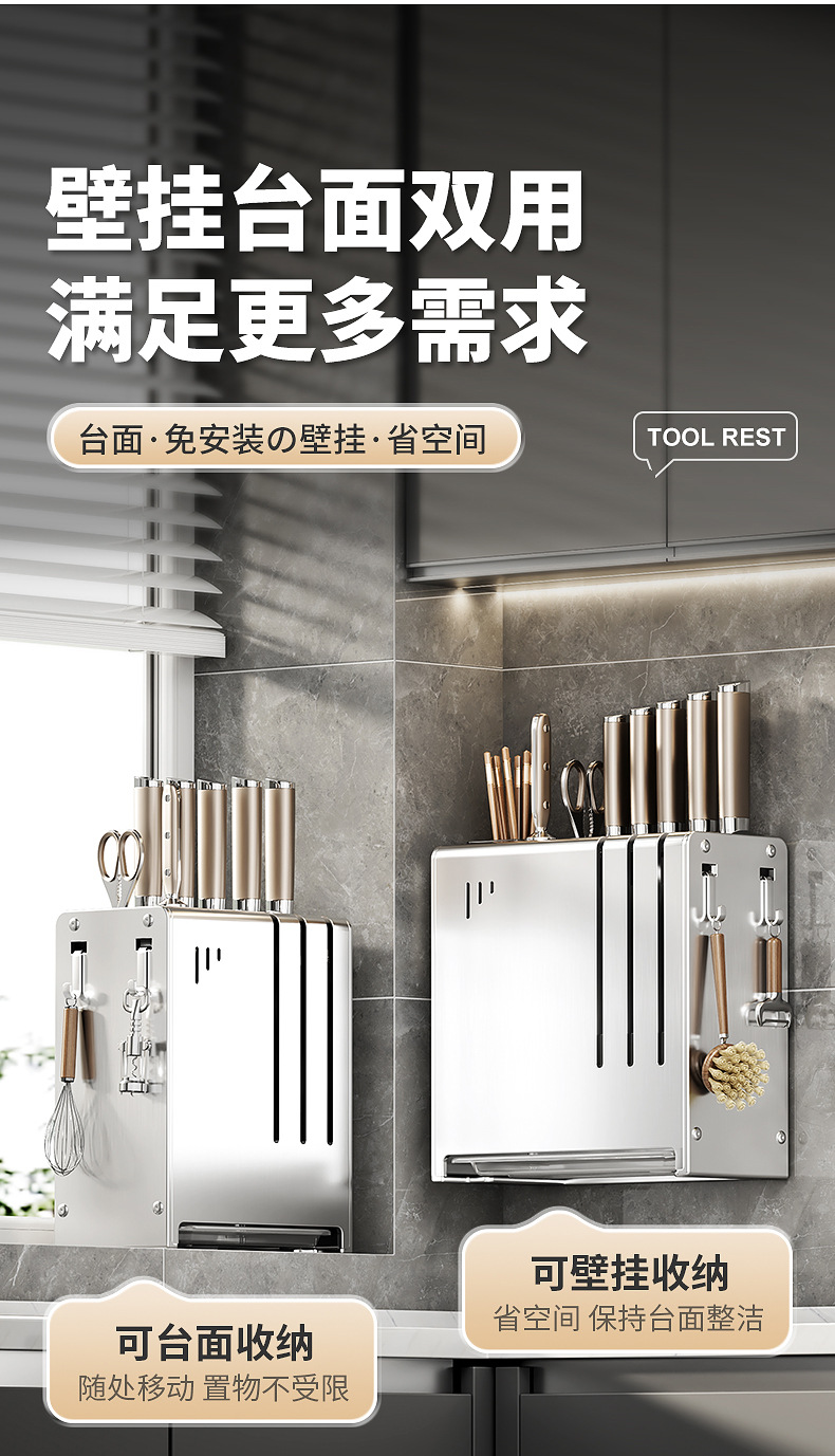 [wall hanging] stainless steel knife holder with chopsticks holder