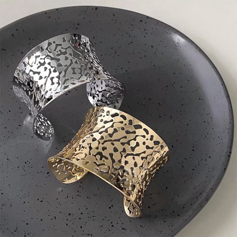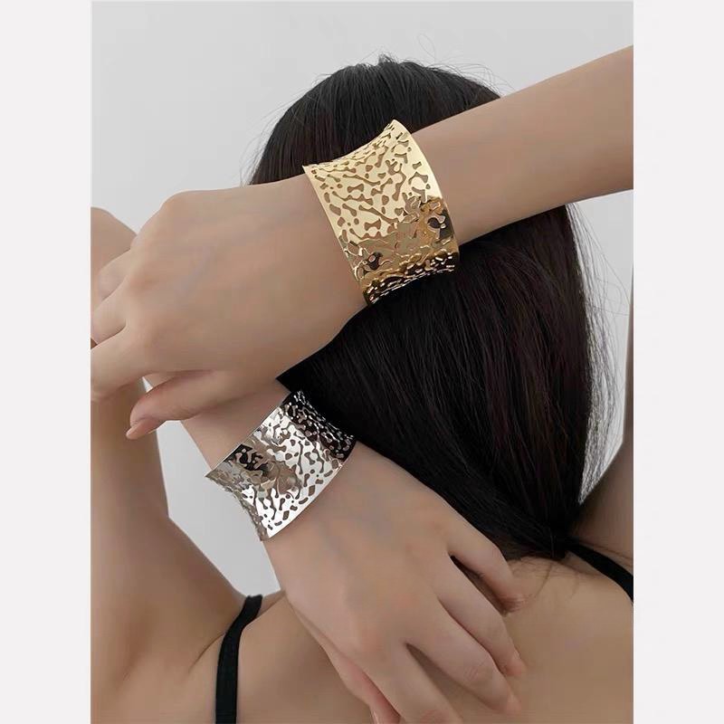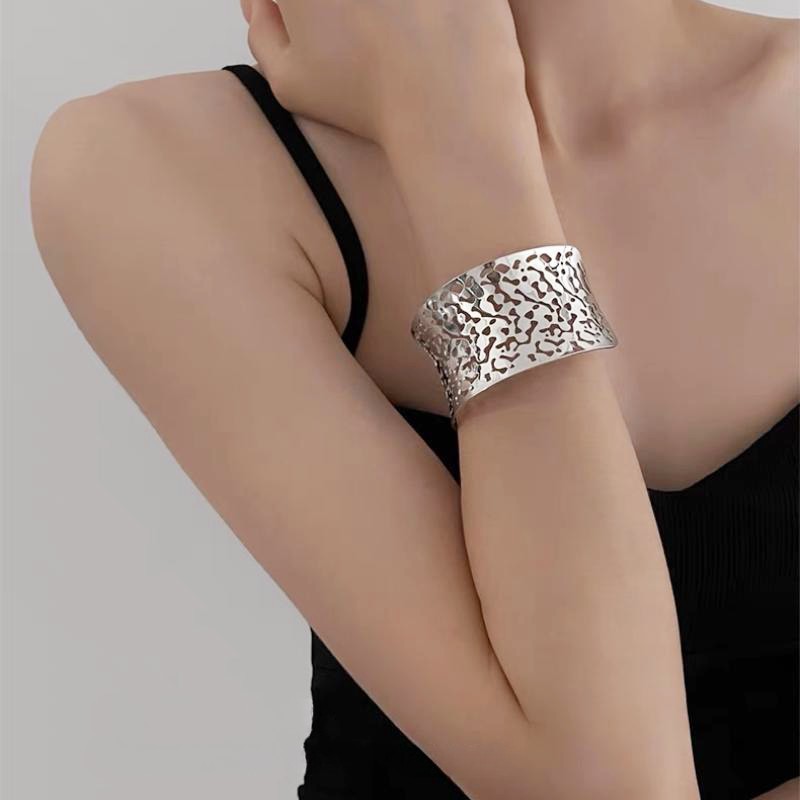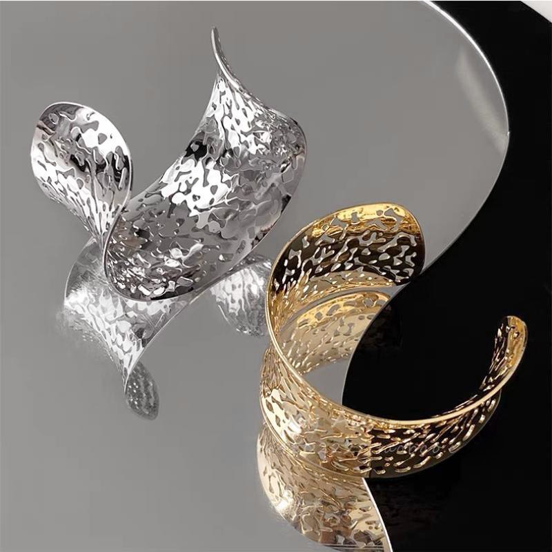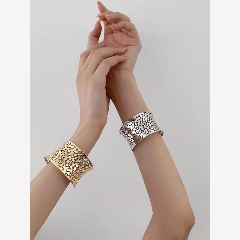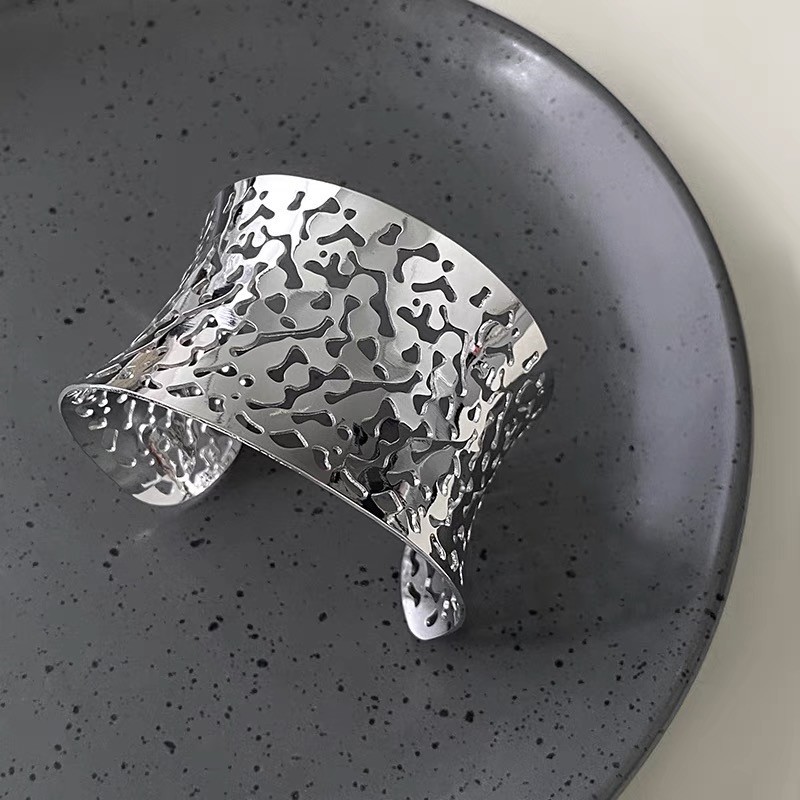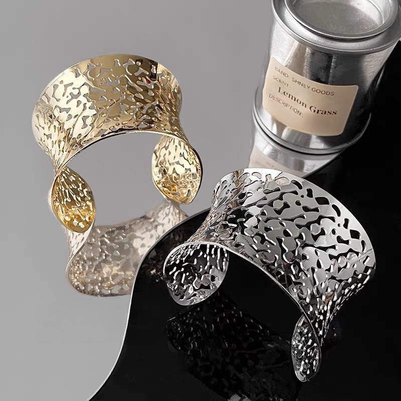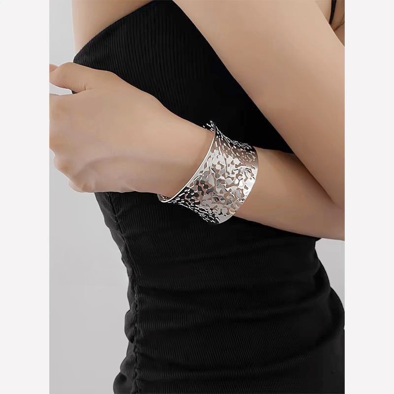 hollow leaves open-ended bracelet-silver
