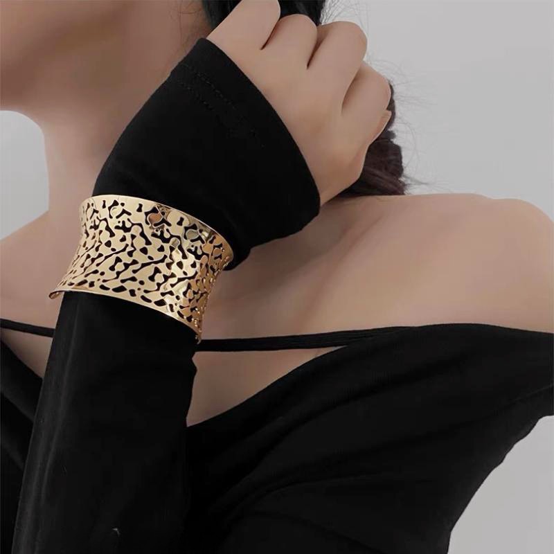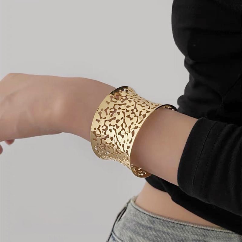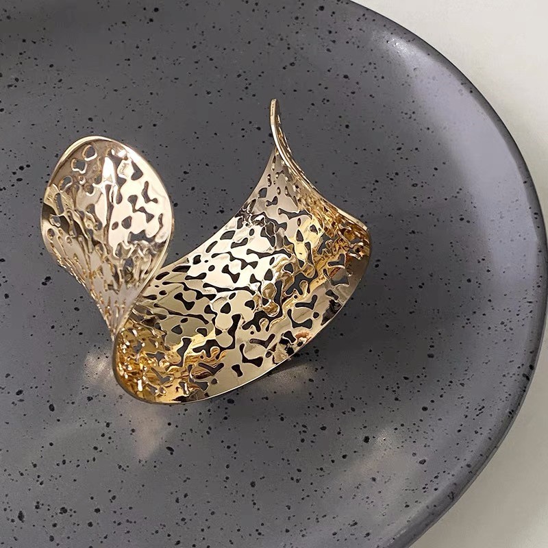 hollow leaves open-ended bracelet-gold