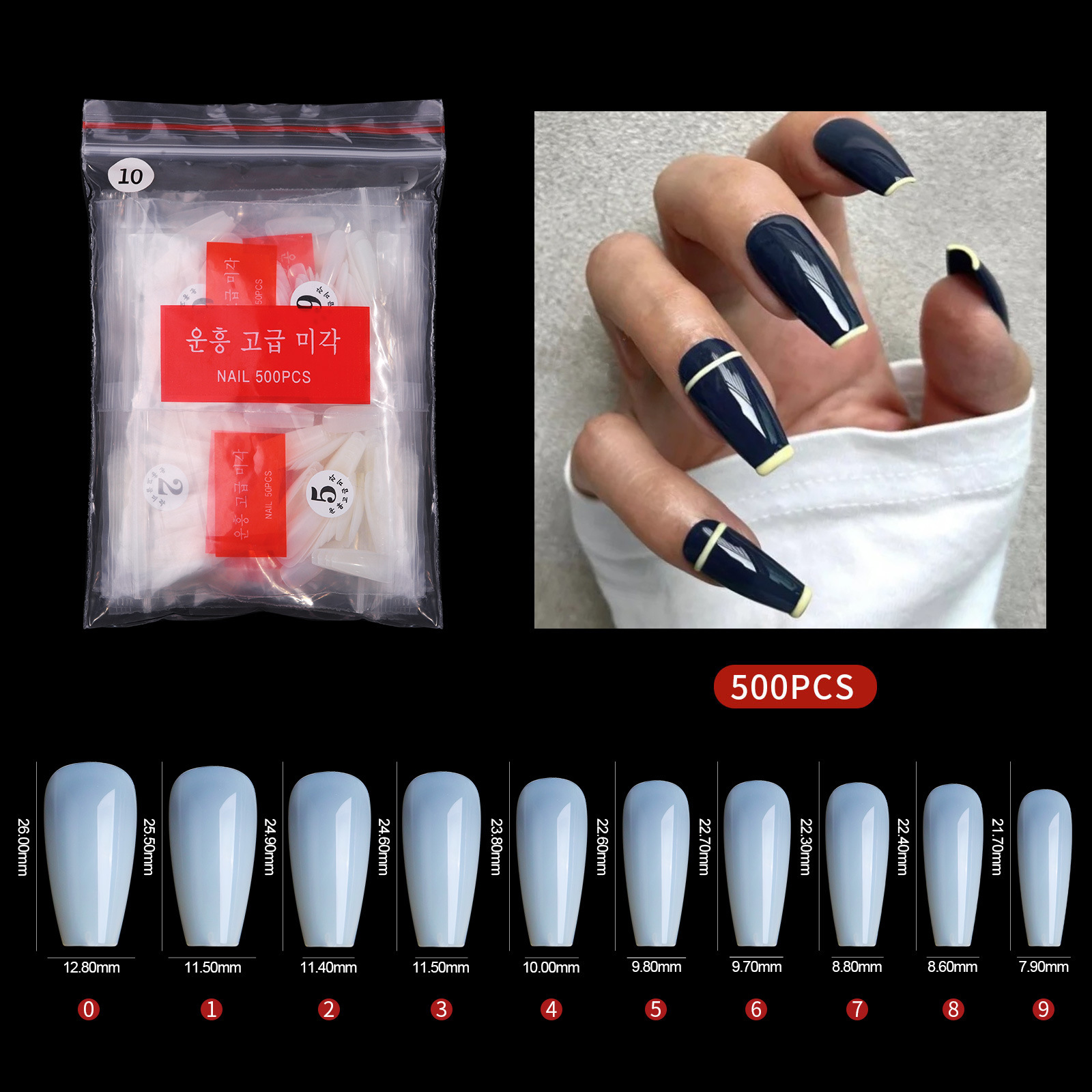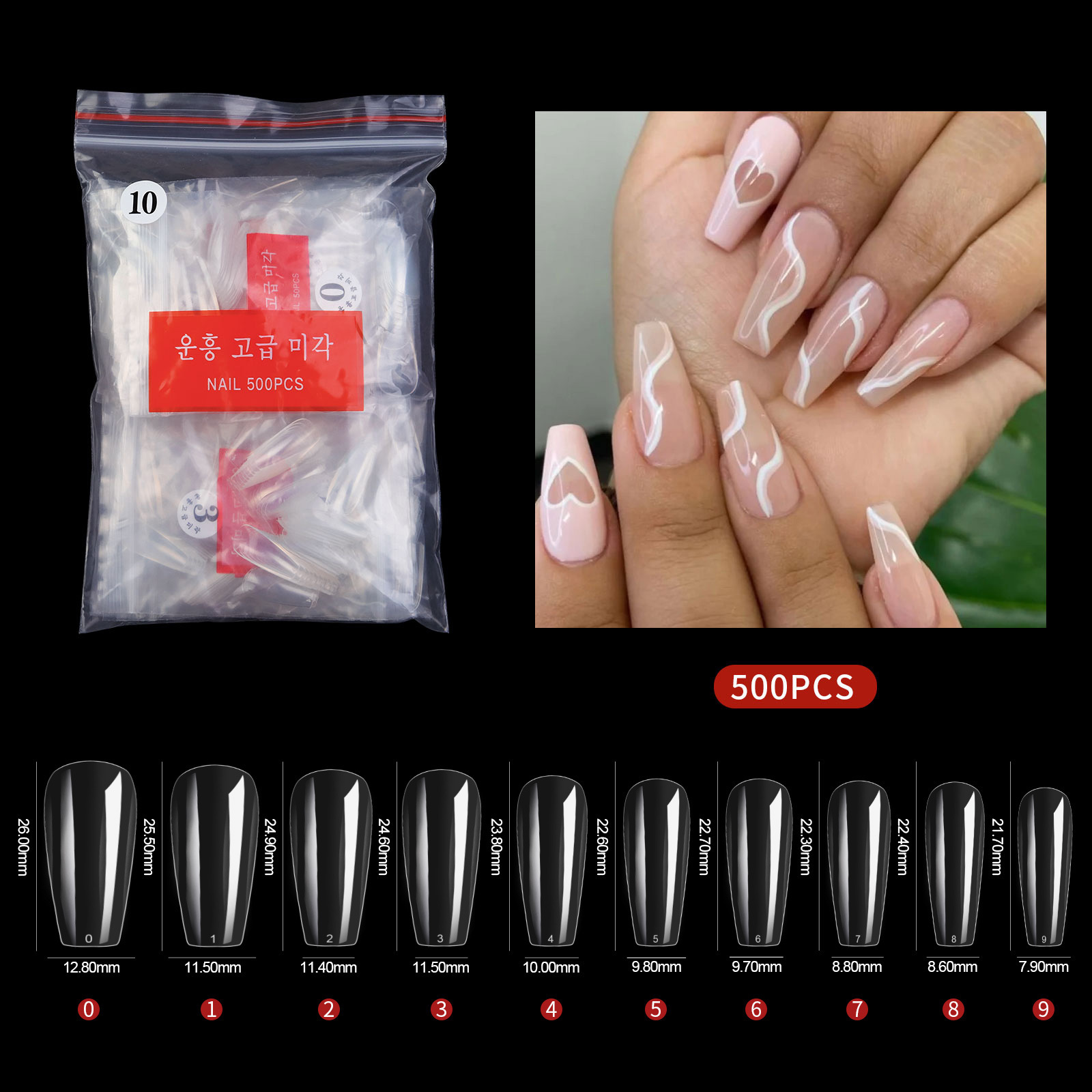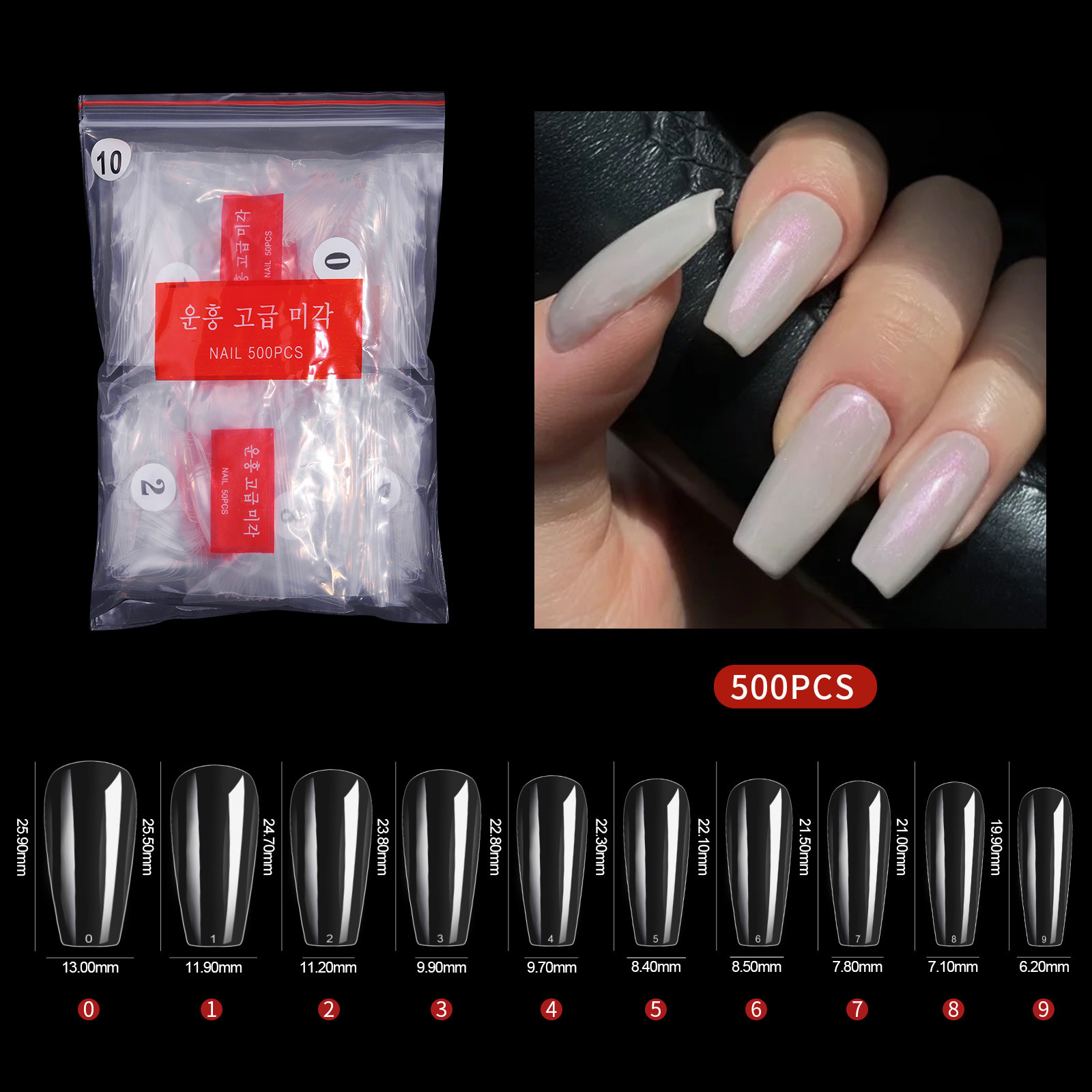 500 pieces bag nail tip b10# transparent color