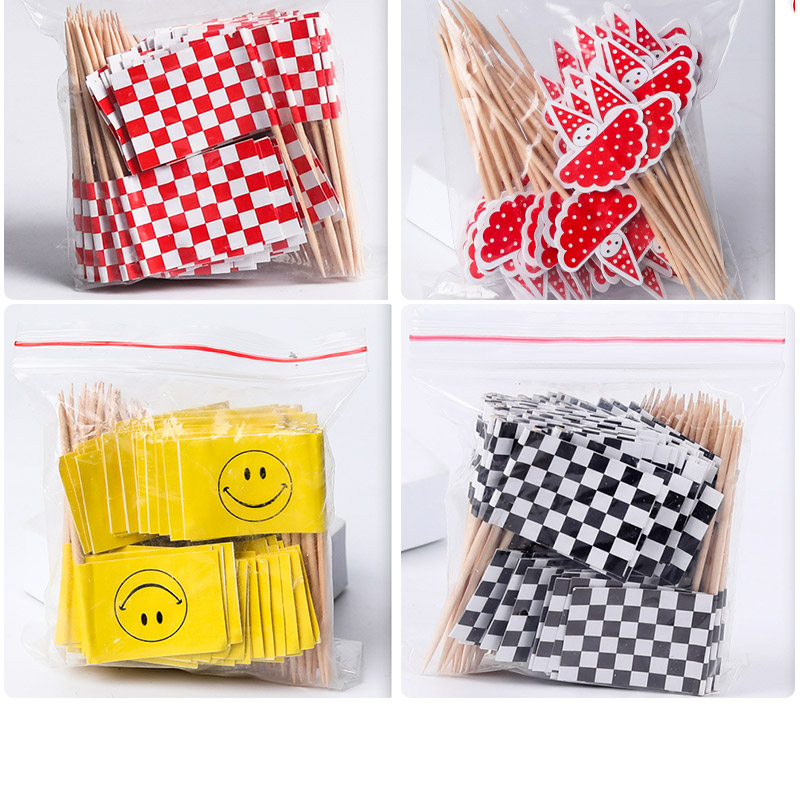 black and white plaid flag toothstick♢