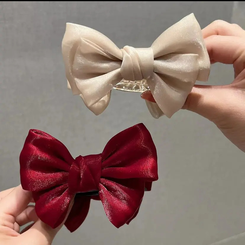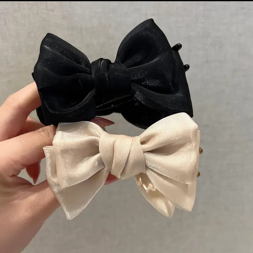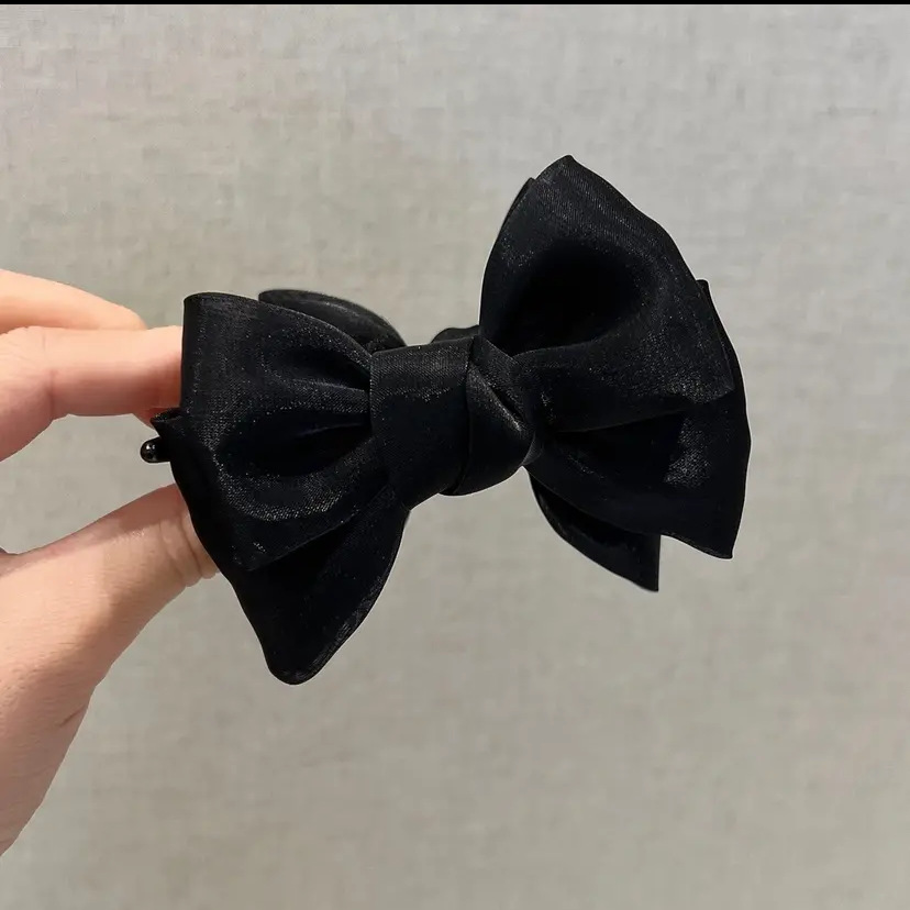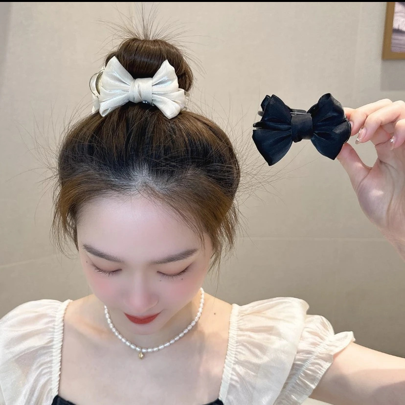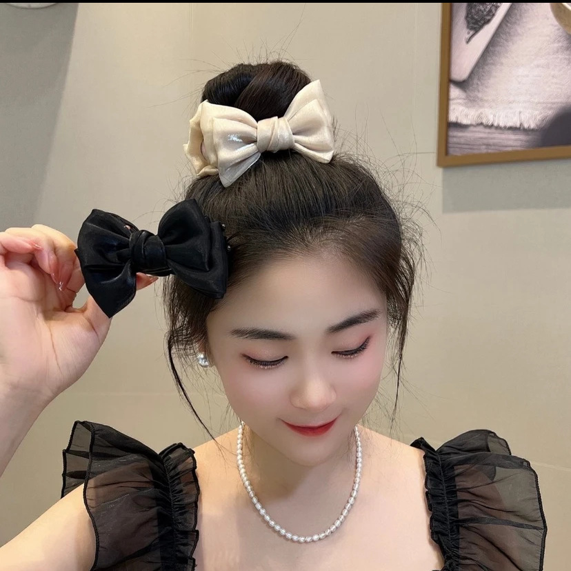 super fairy mermaid french pearl satin double-sided bow barrettes temperament small size high ponytail shark clip hair accessories