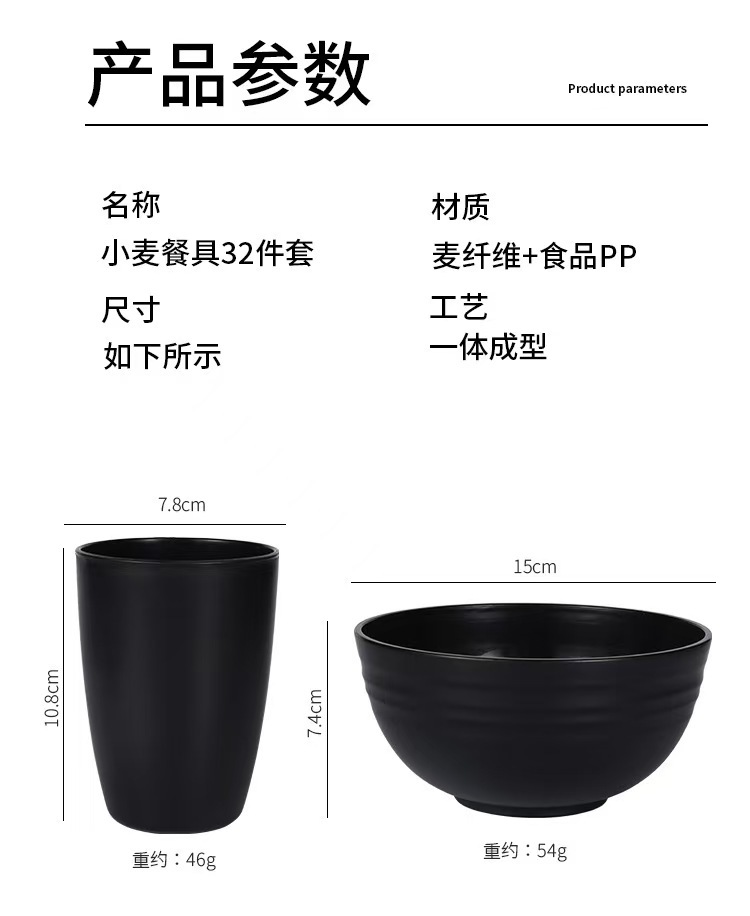 black 32-piece set (23 plates +20 plates + bowl + big belly cup)