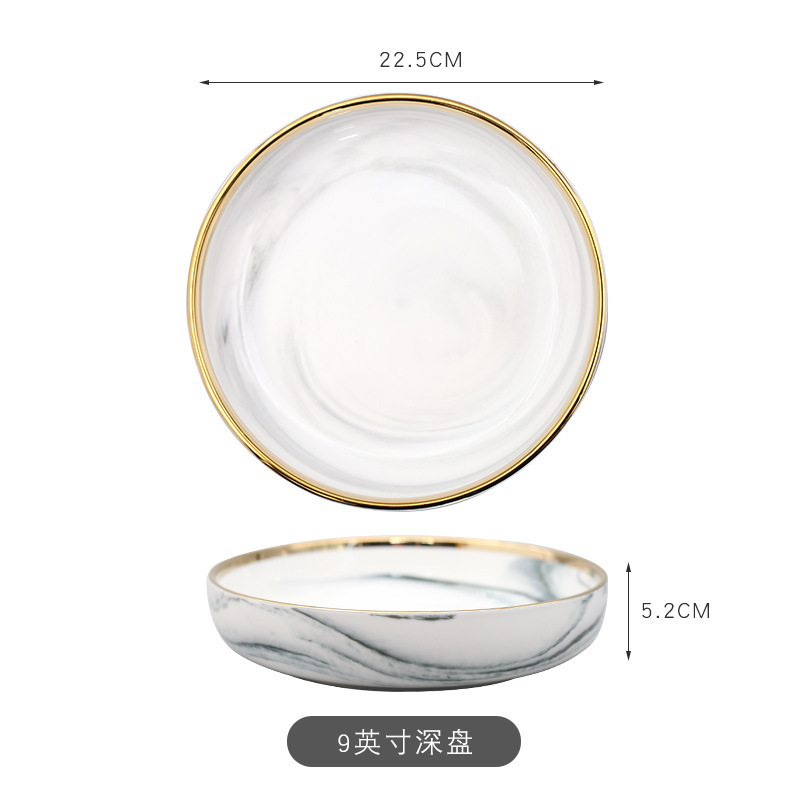 9-inch deep plates (marbling gold gray)