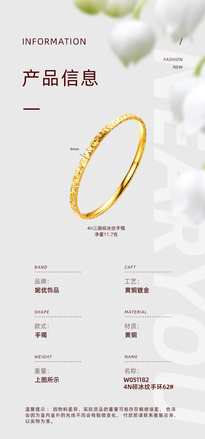 6n three-sided ice crushing pattern bracelet 62#