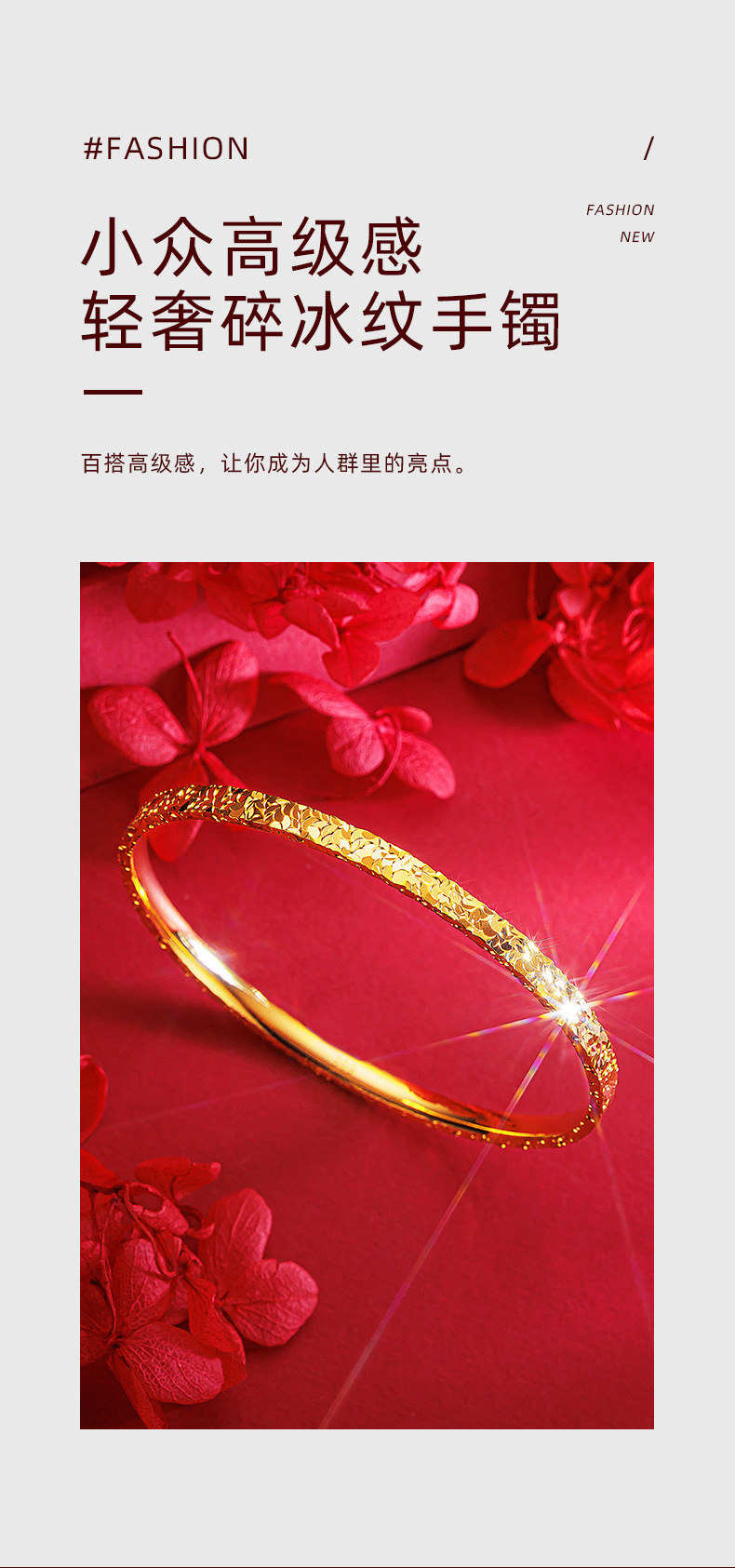 6n three-sided ice crushing pattern bracelet 56#