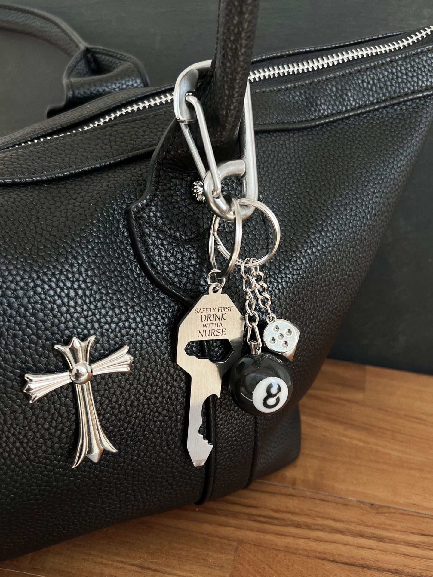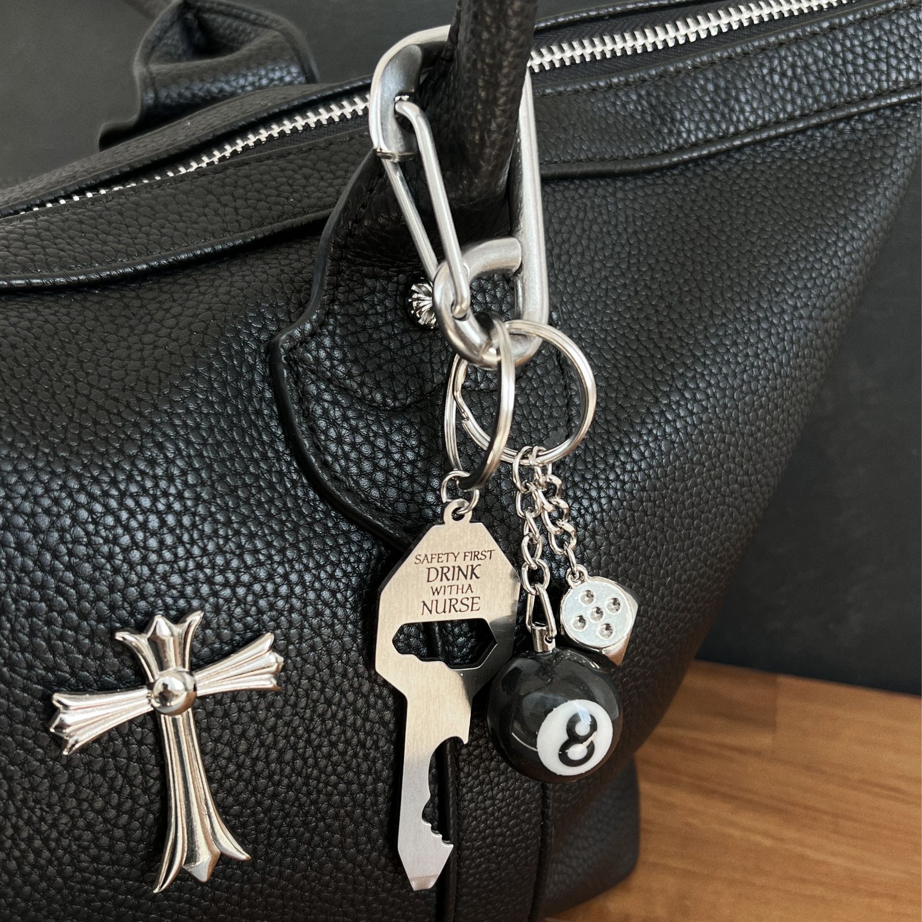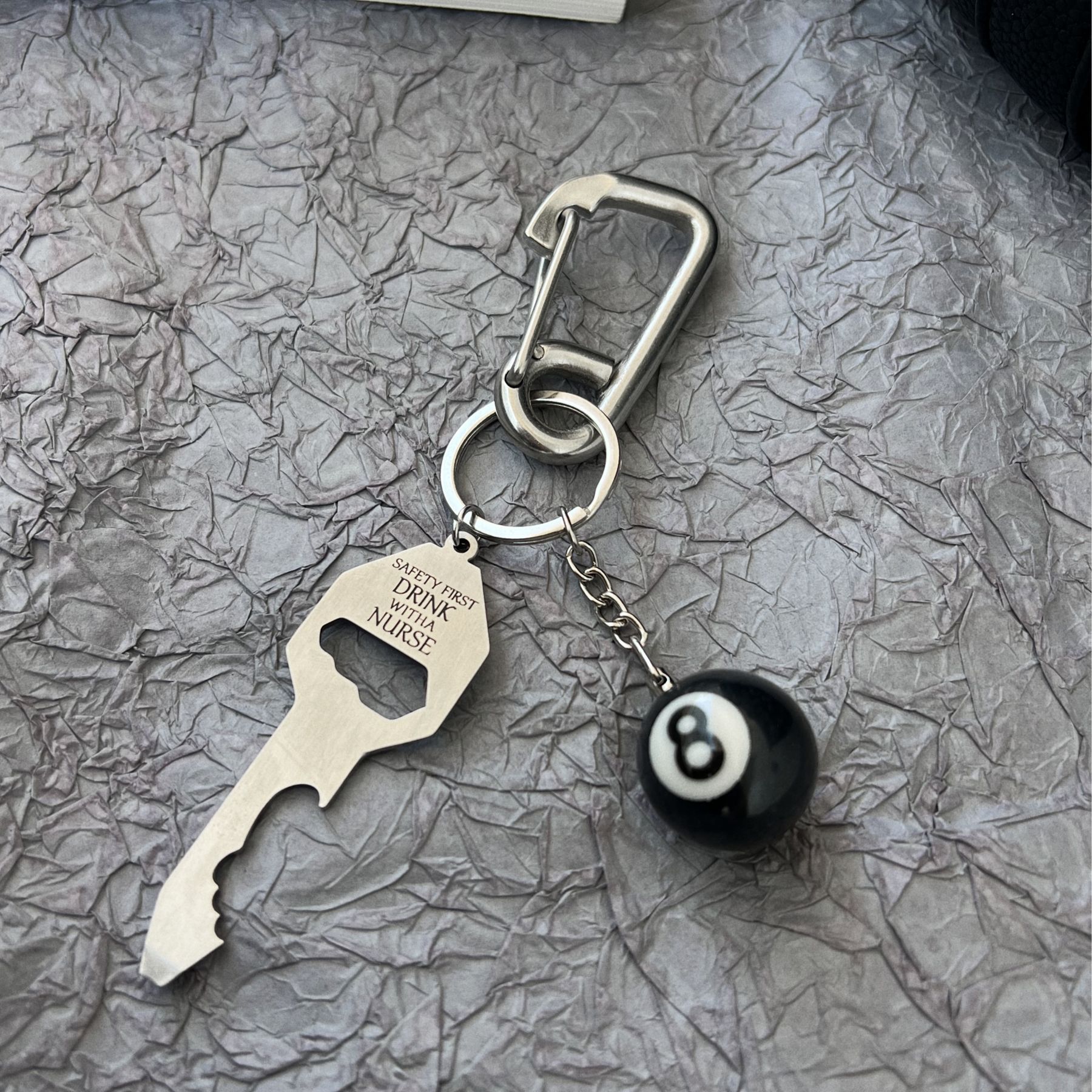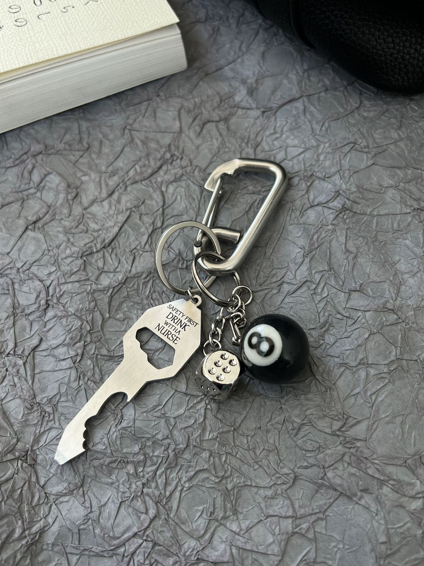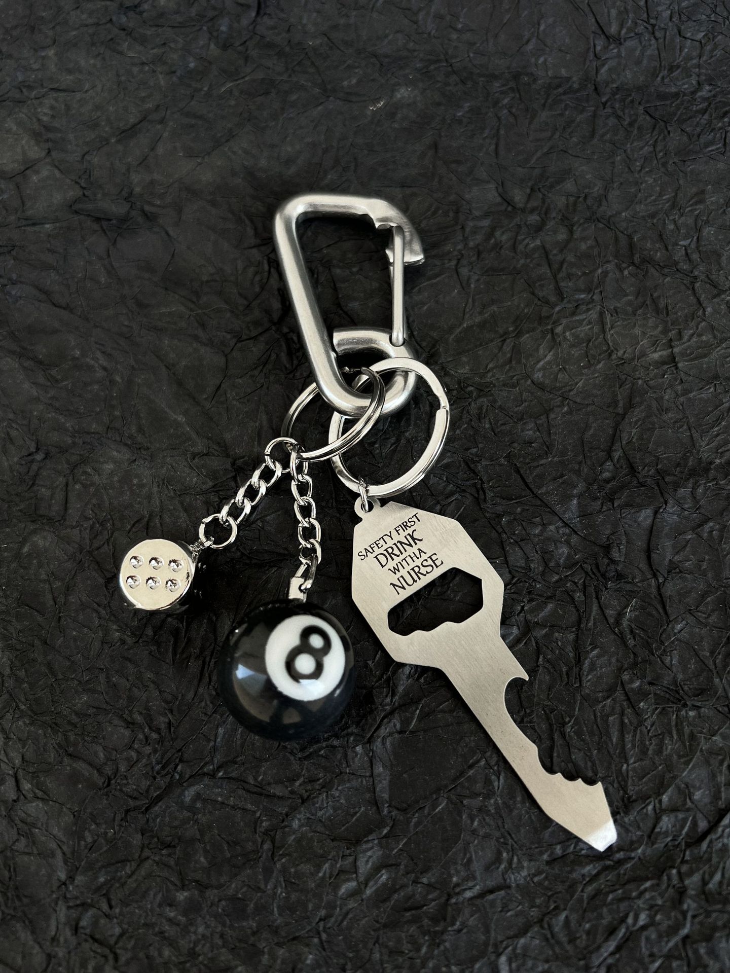 climbing button carabiner [nurse key + black 8 + silver dice]/vacuum packaging
