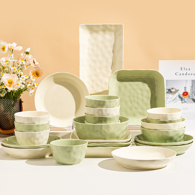 cream green 8-inch square plate