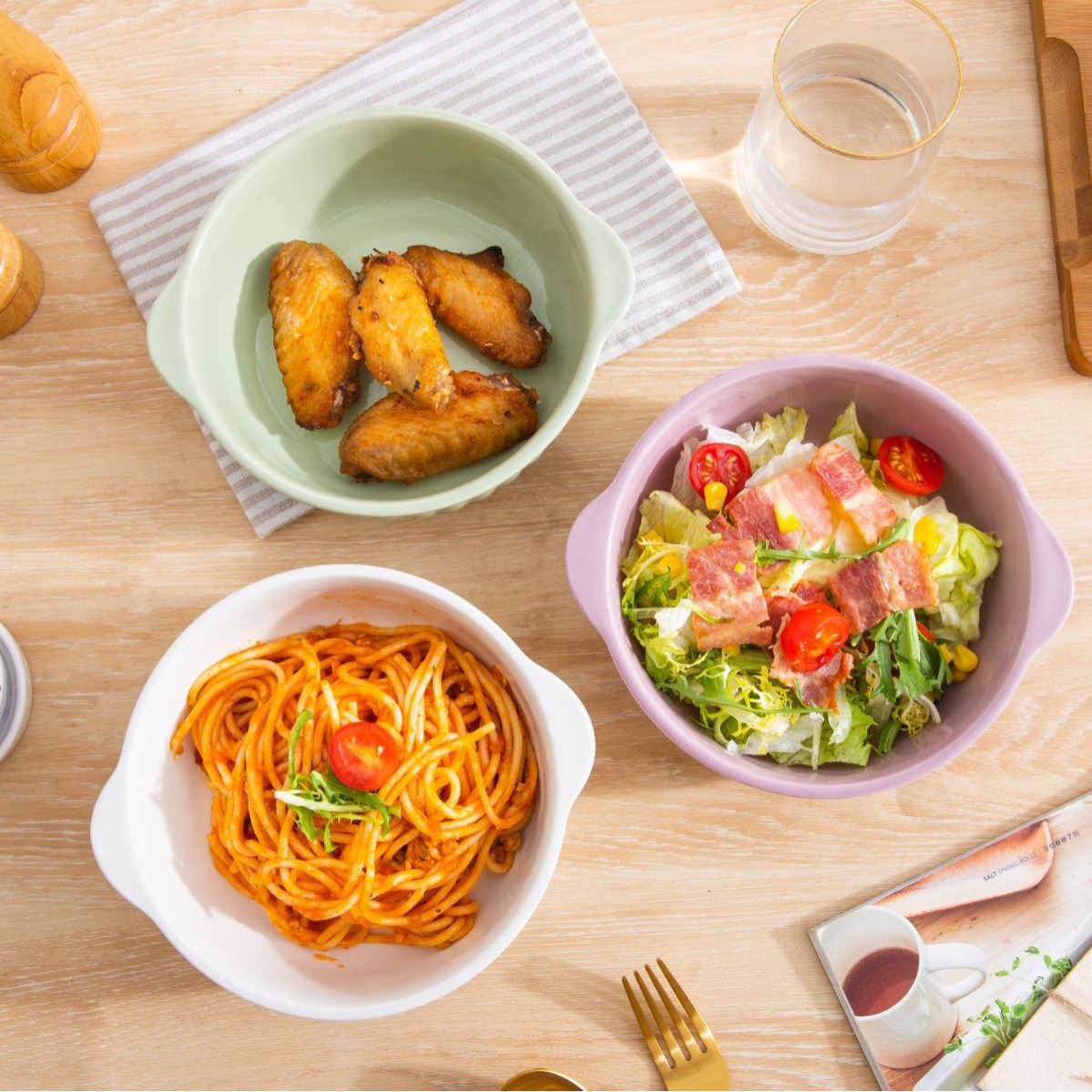 7.5-inch binaural striped bowl-green