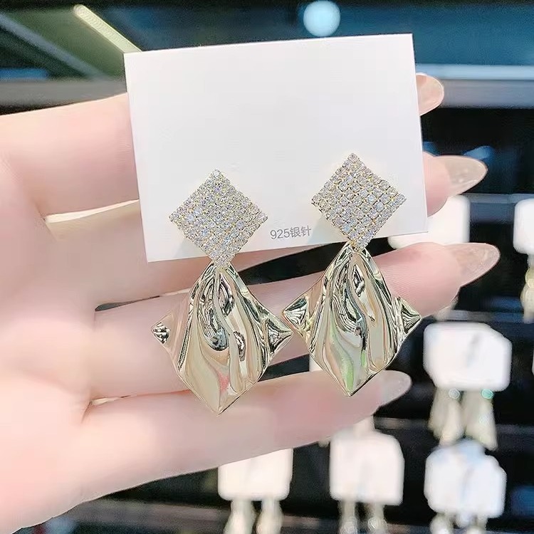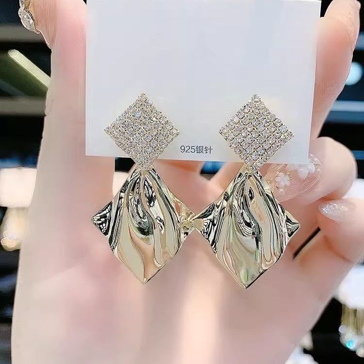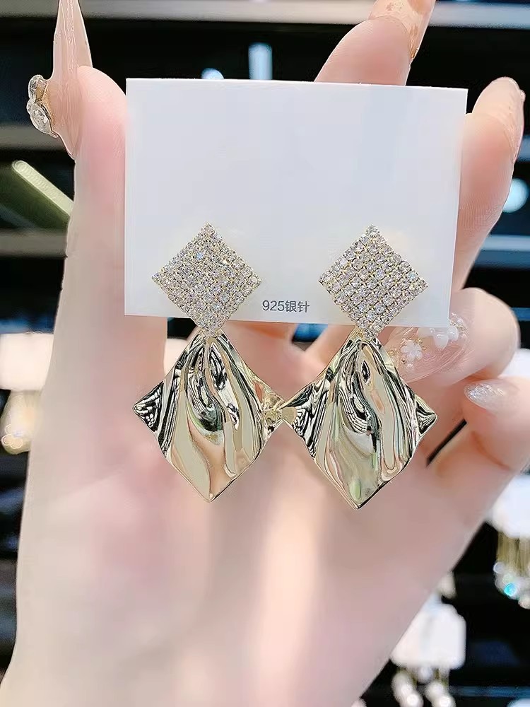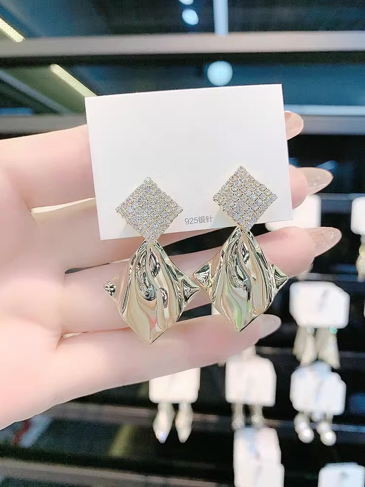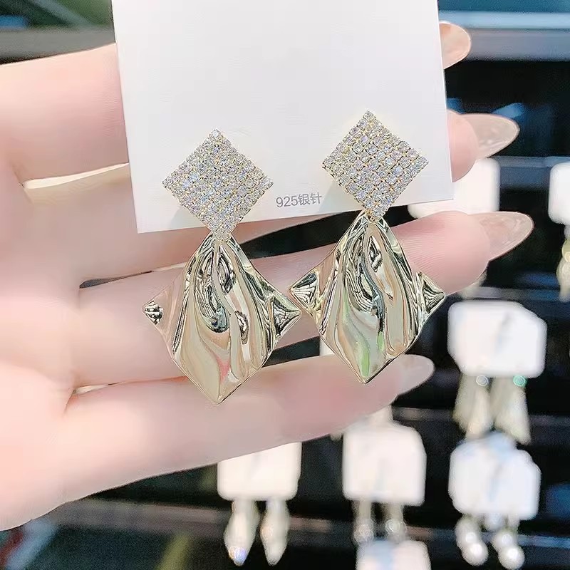 gold geometric earrings silver needle