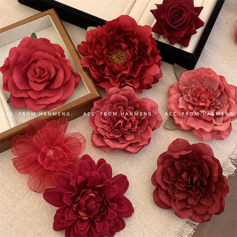 wine red artificial flower duckbill clip