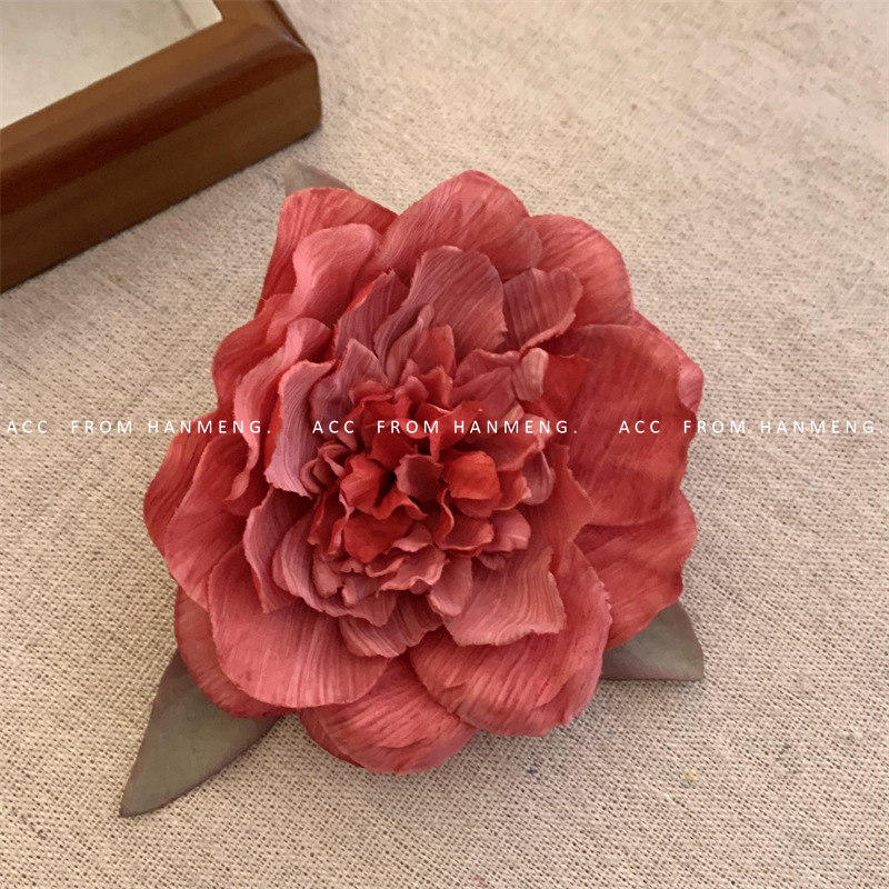 red peony flower barrettes