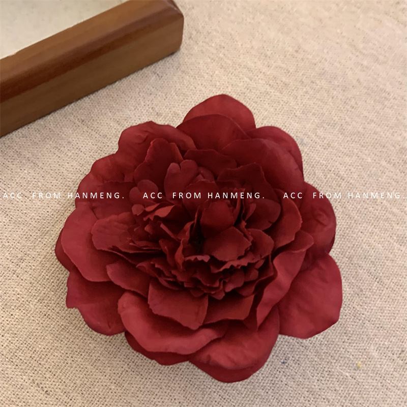 wine red peony flower barrettes