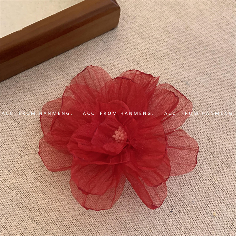red flower flower core barrettes