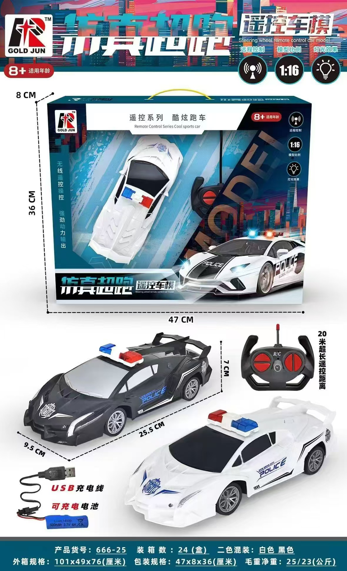 2-way remote control city police car without power package 585-74 [2 colors random]]