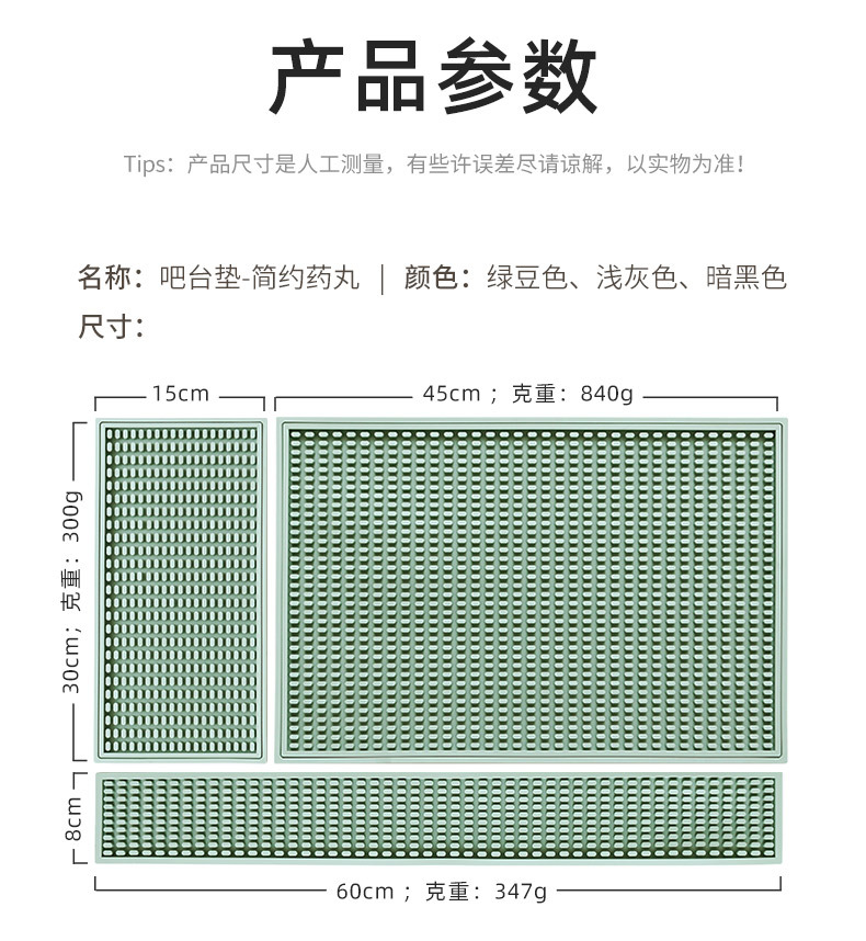 bar table mat simple pill 15*30 pea green two pack