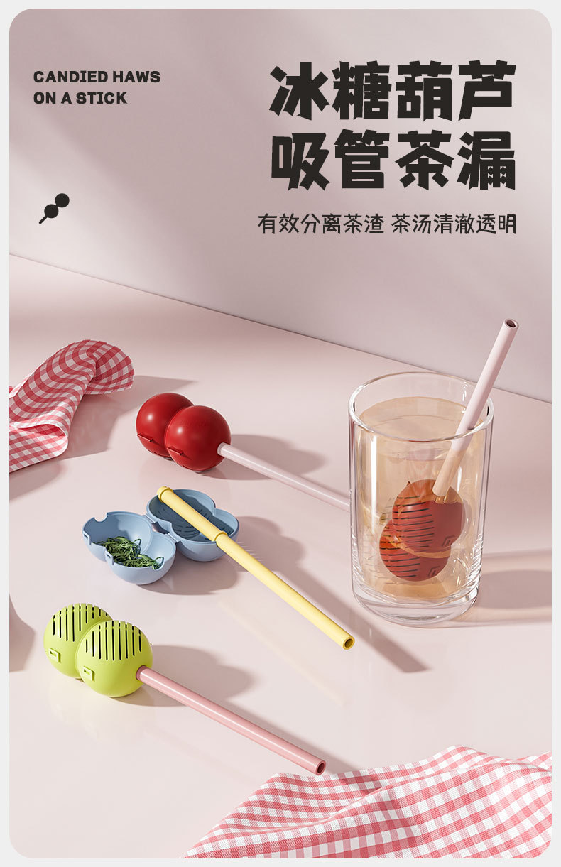 straw tea strainer-red