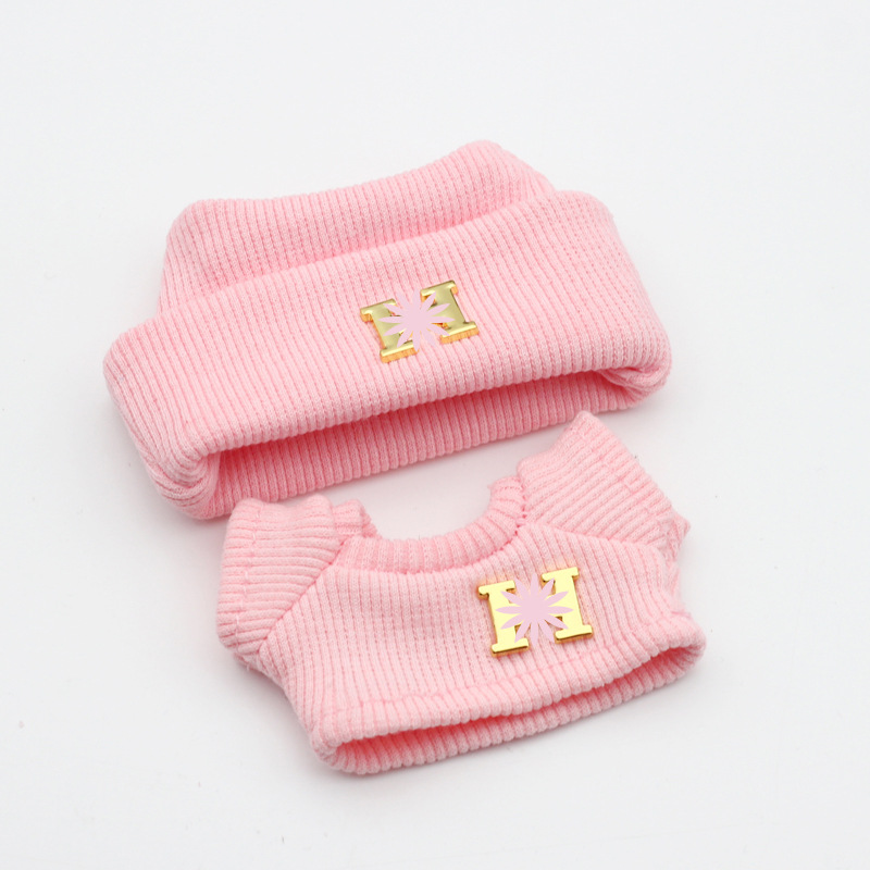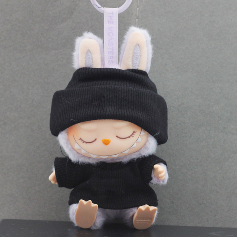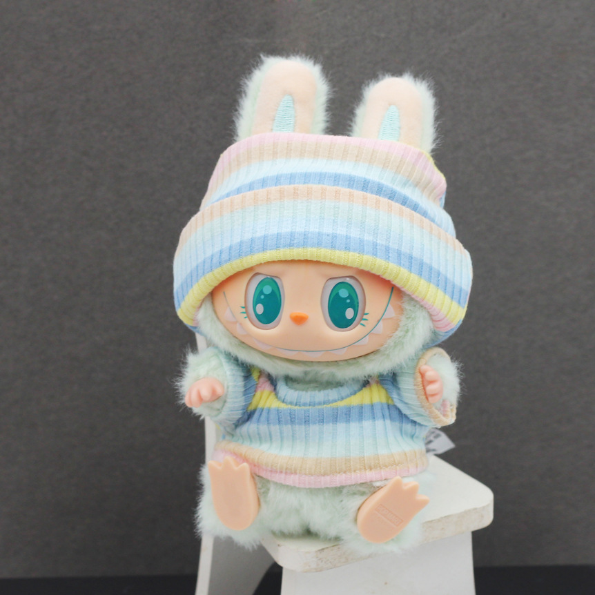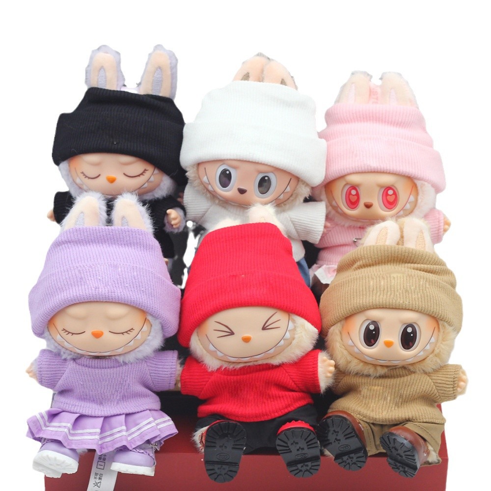 17CM Labubu Sugar Gummy Doll Lattice Edge Hat + Knitted T-shirt for Labubu Generation 1 and 2 Dolls