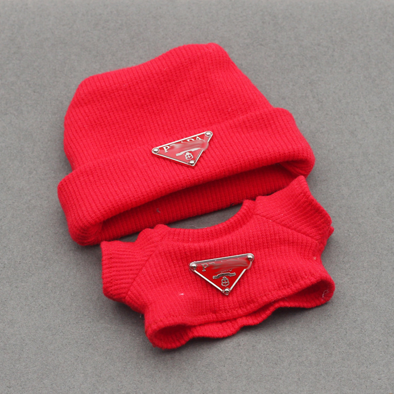 triangle mark knitted t + hat red