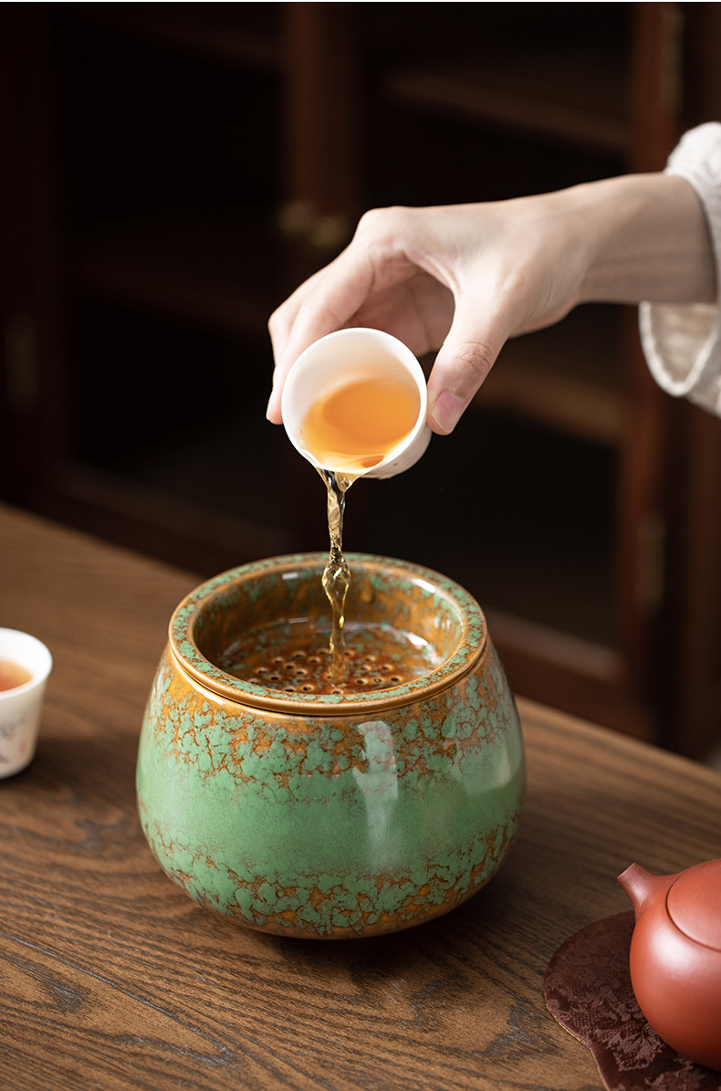 exhausted tea jar -- flow golden green + filter cover