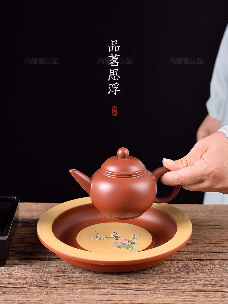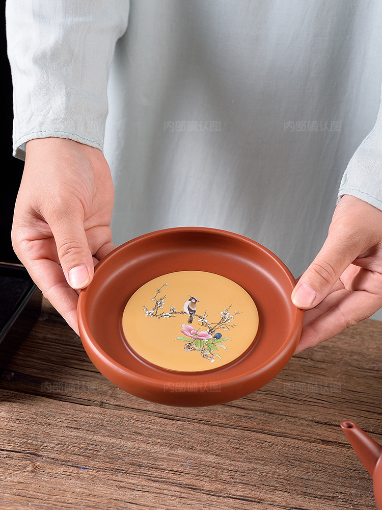dahongpao tea flower and bird big mouth purple clay pot mat