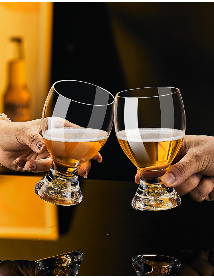 gold foil beer steins 370ml-(6 pcs) + crystal cup holder