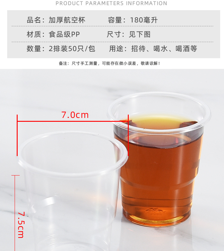 a pack of 50 pcs thickened water cup 180 ml