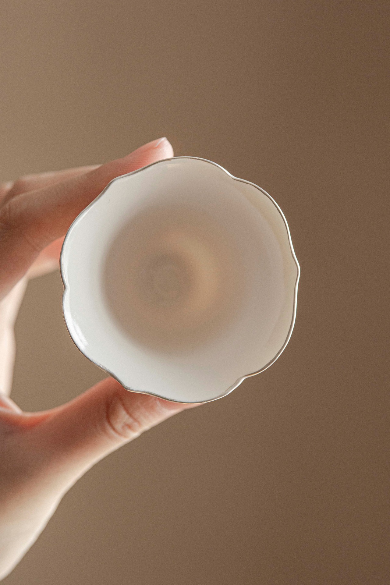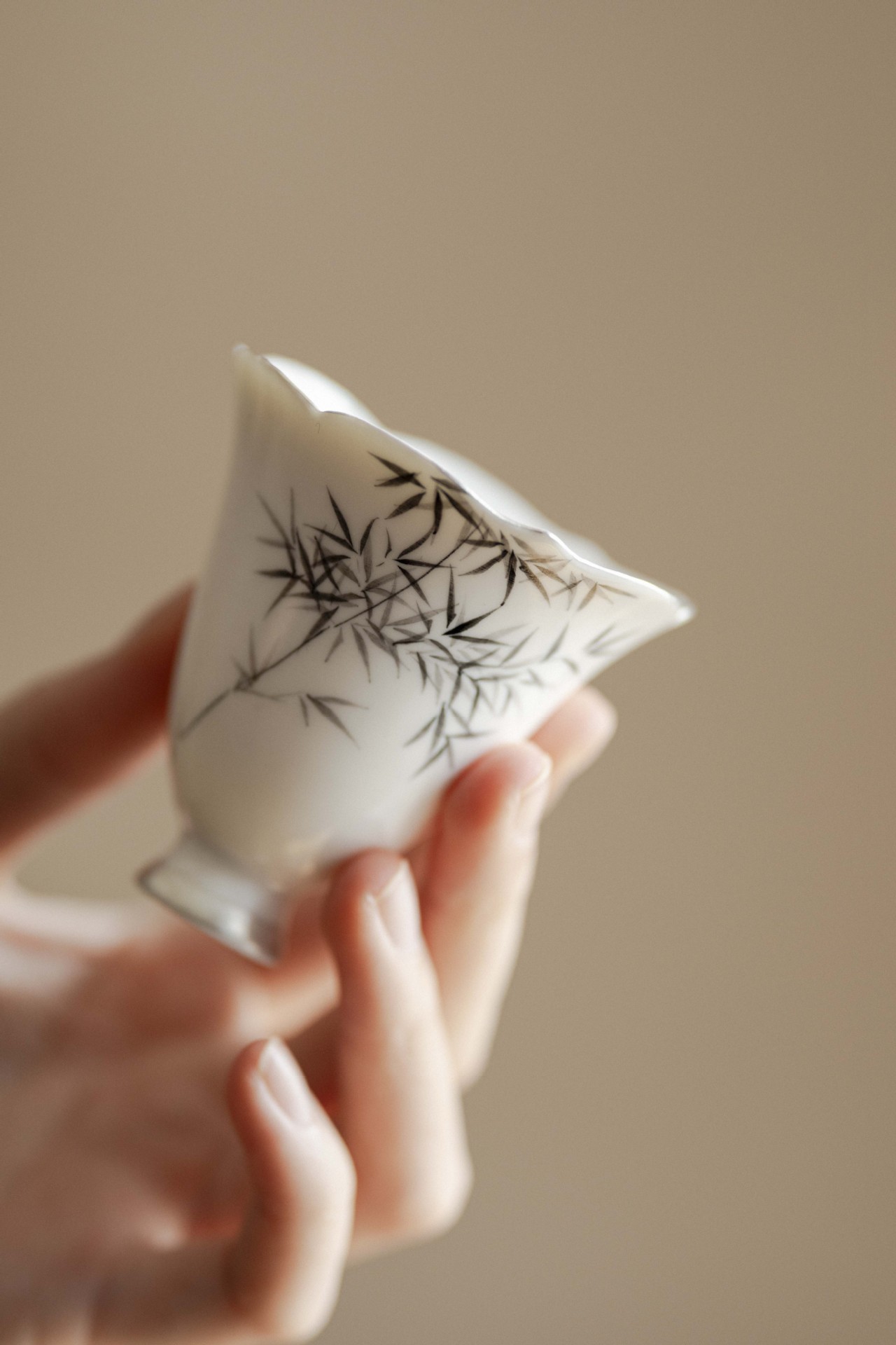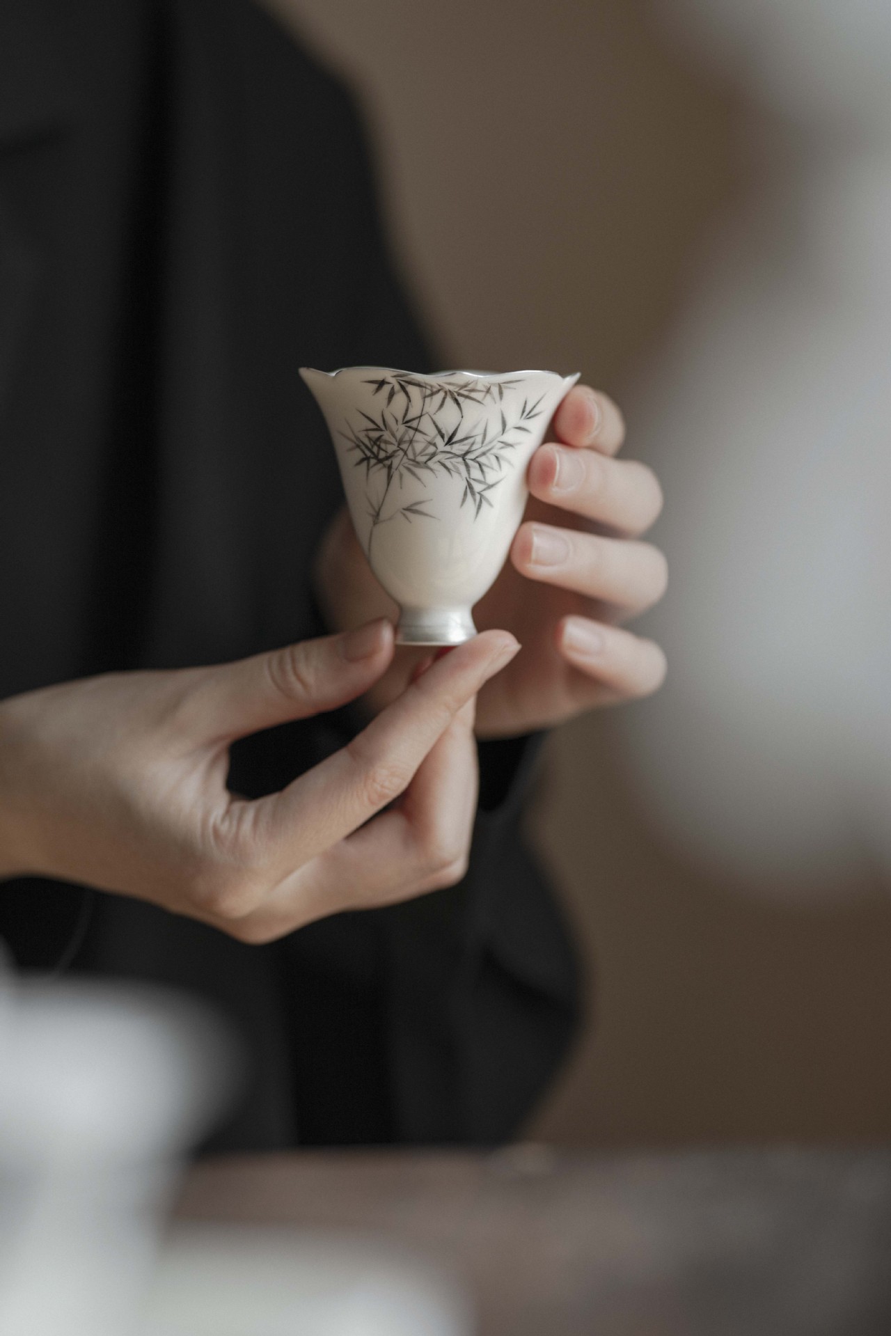 hand painted-rain listening bamboo-silver gilded-shiman flower mouth tea cup