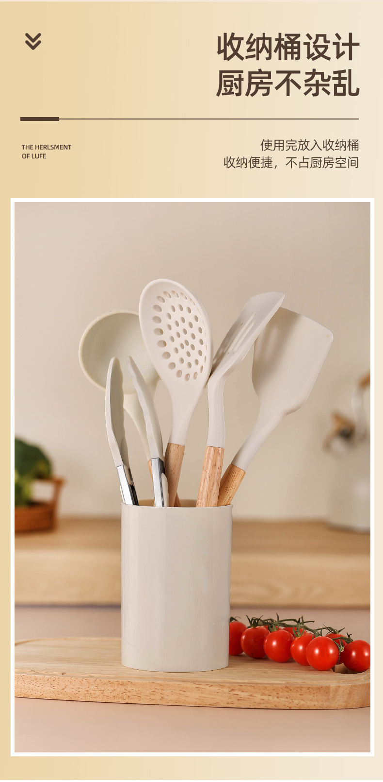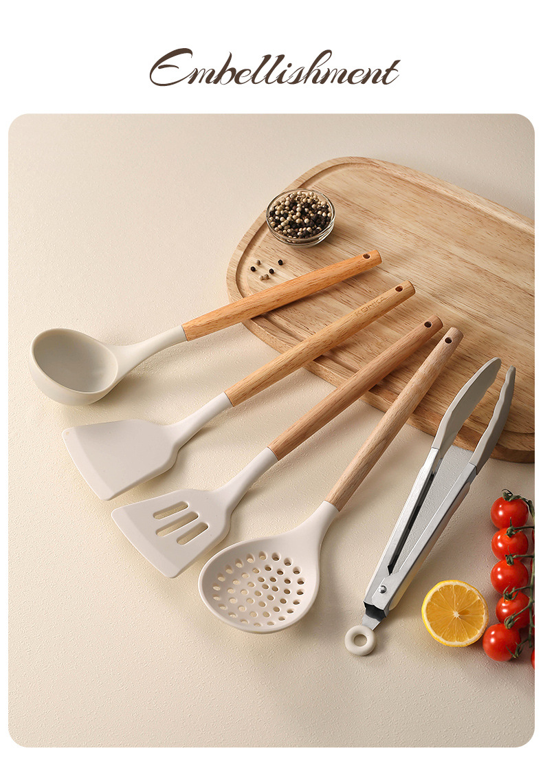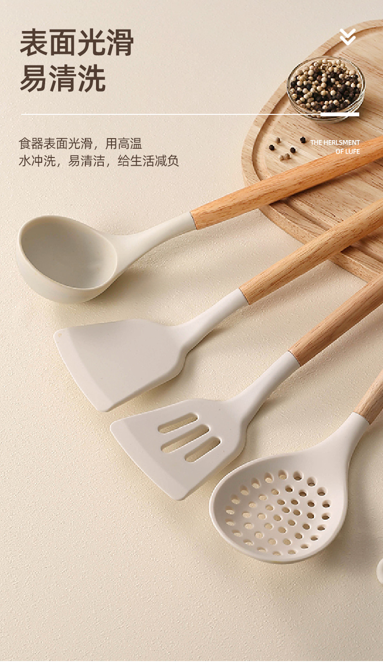 spatula with a wooden handle-white