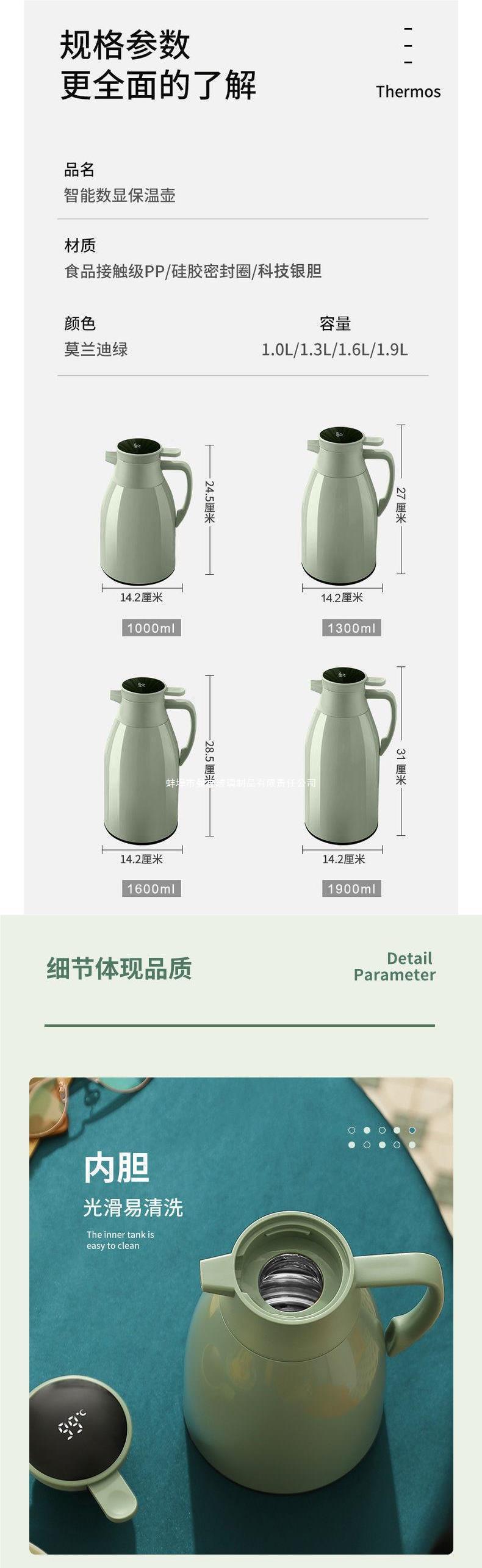 smart temperature display [morandi green] 1.3l (dustproof) 88888888