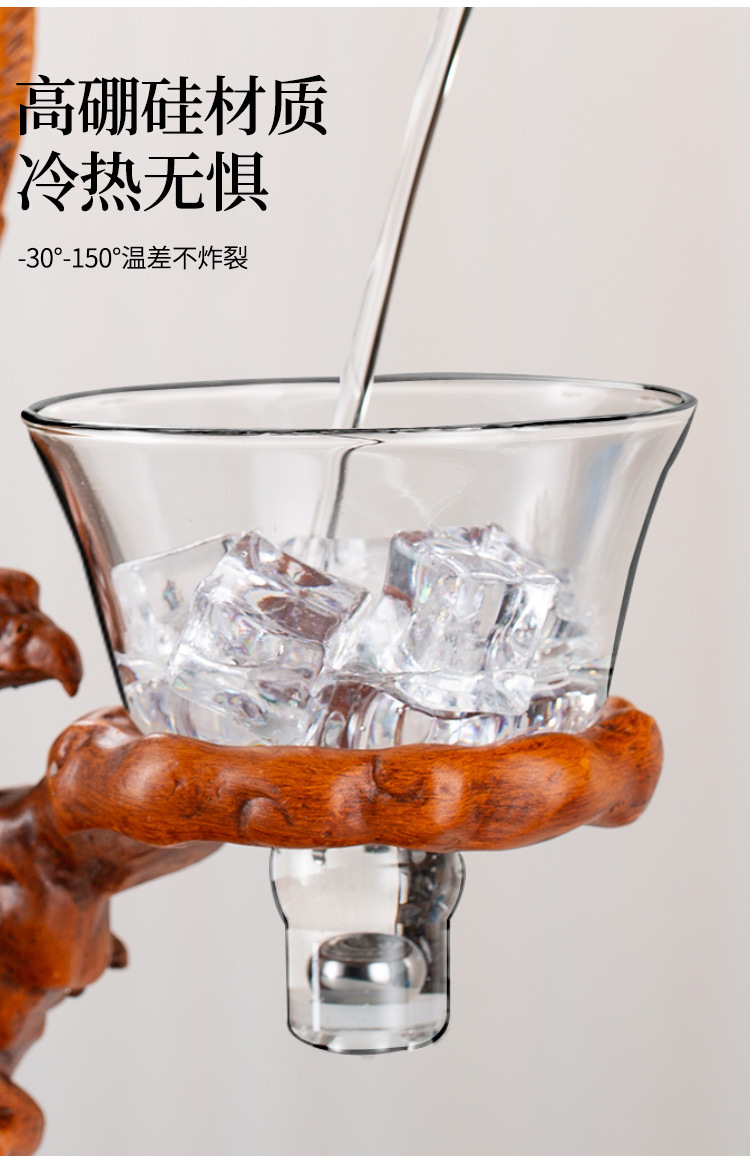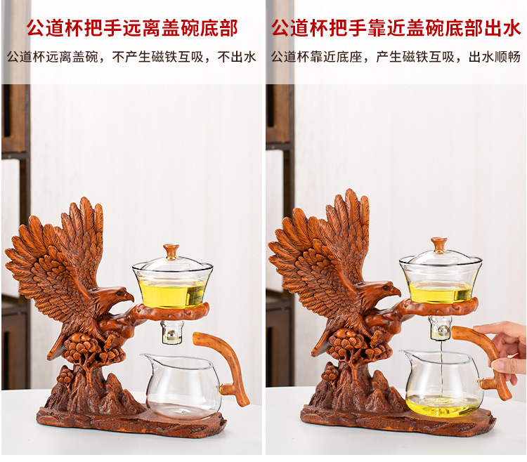jh001859-d glass automatic tea set dapeng wings (wood color) (base)