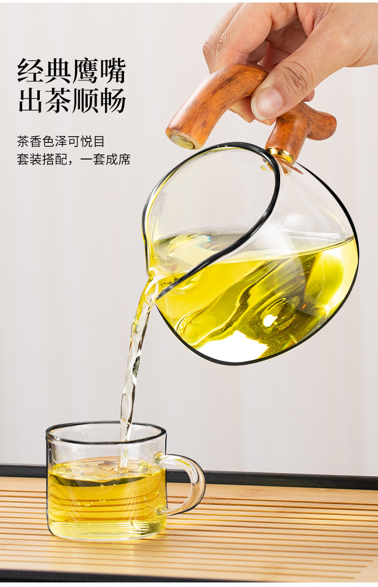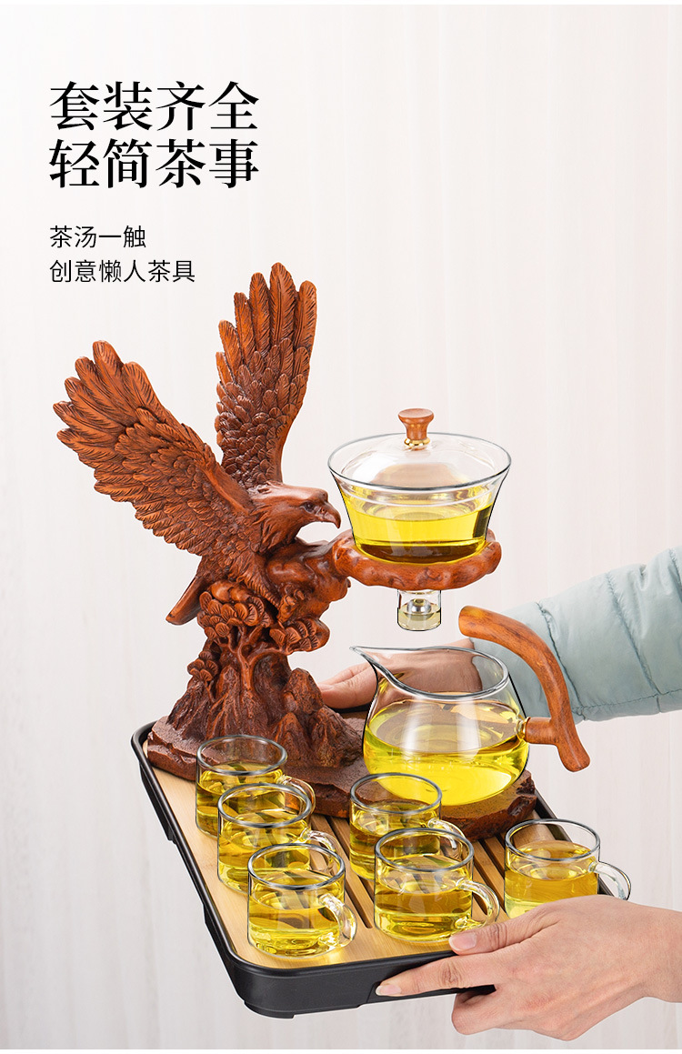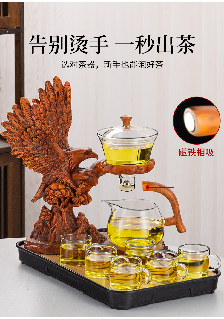 zh001648 glass automatic tea set dapeng wings 6 cups + tea tray (wood color)