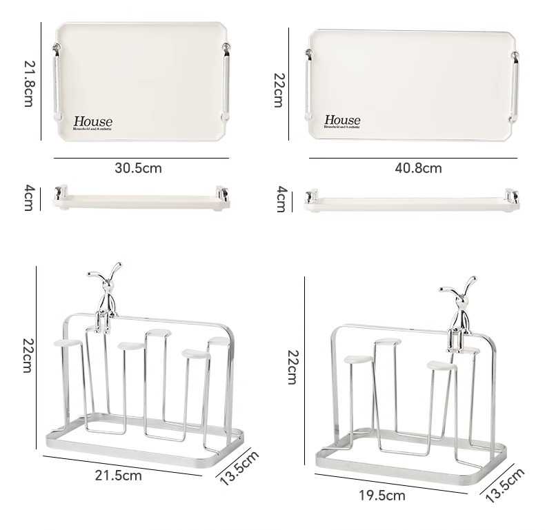 milky white draining tray + four cup holder with non-slip cup cover