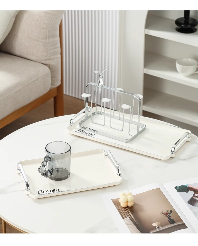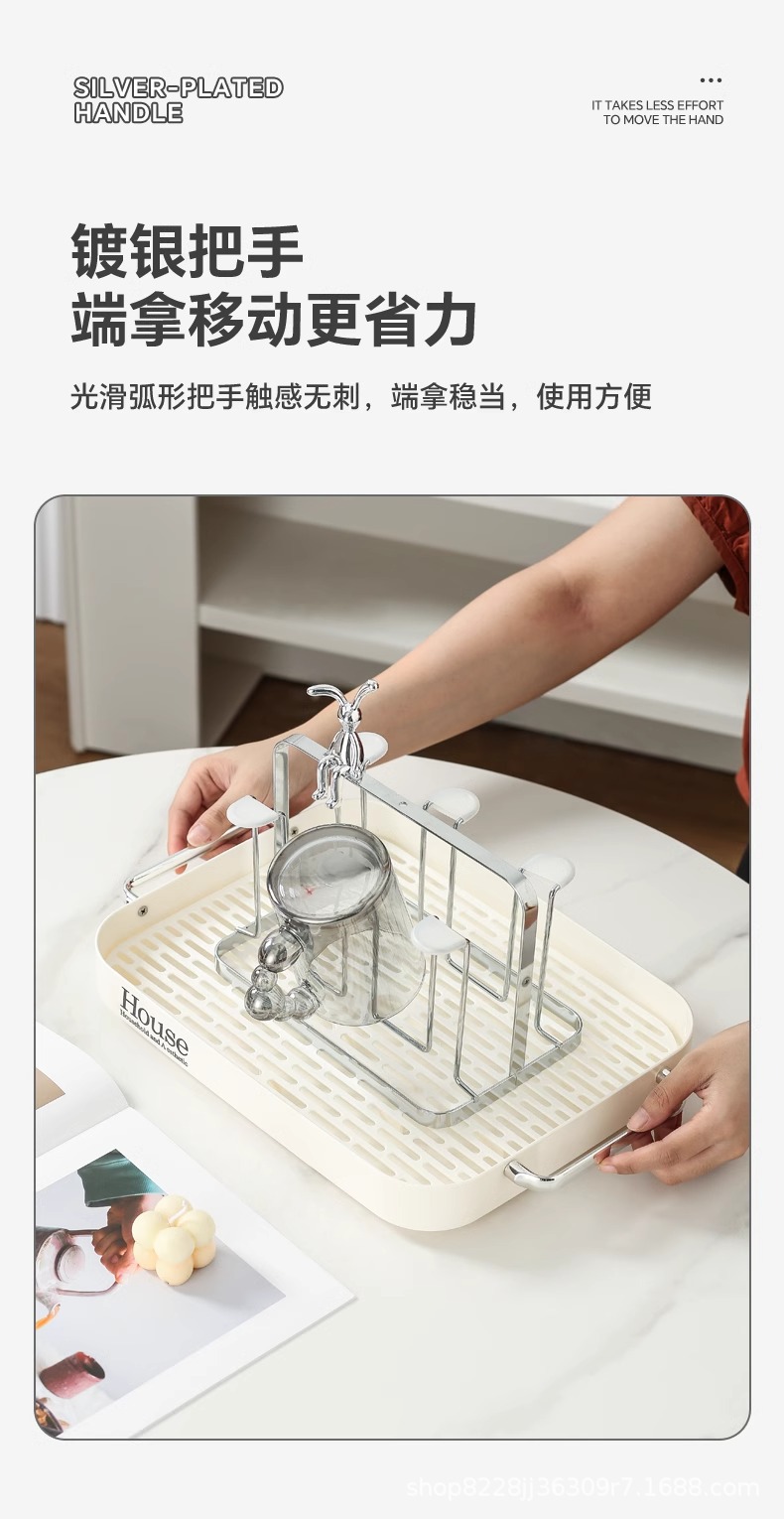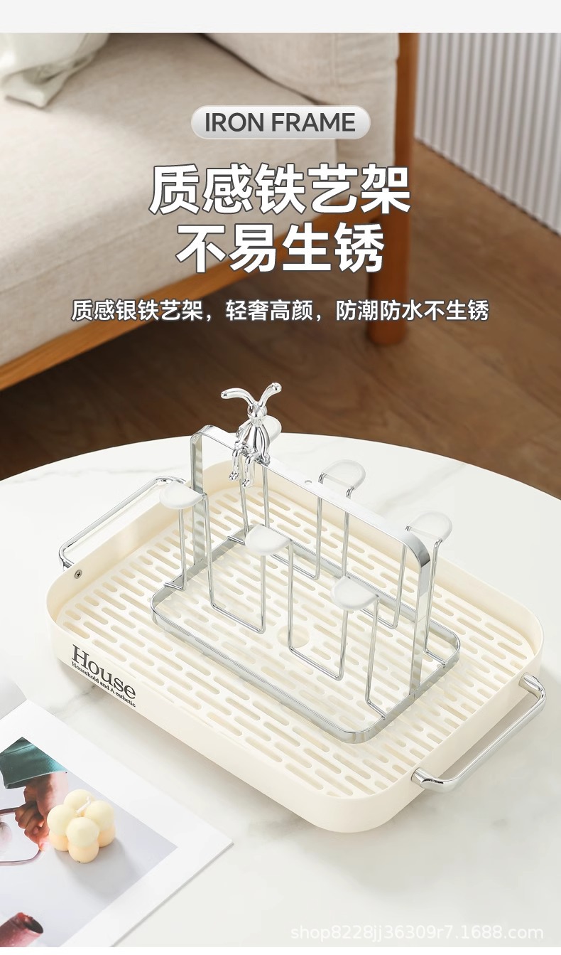 milky white draining tray + six cup holder with non-slip cup cover