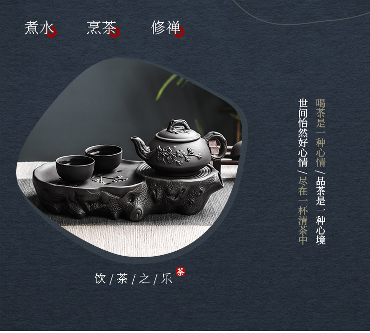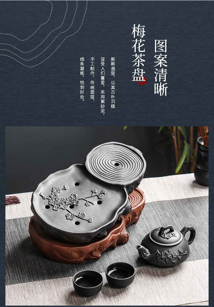 black plum tea tray + small size hanmei aoxue pot +4 small cups