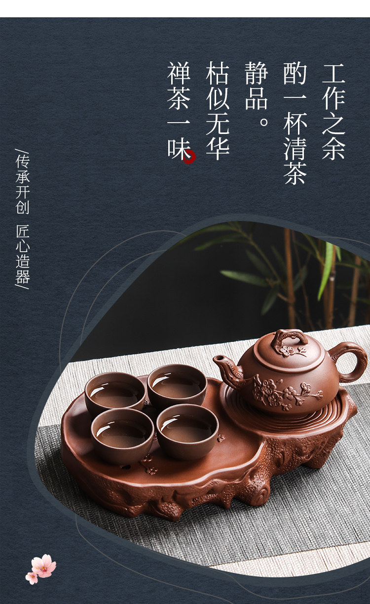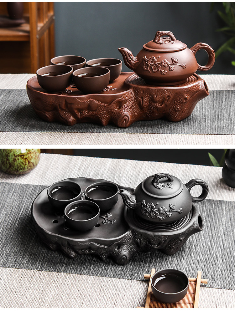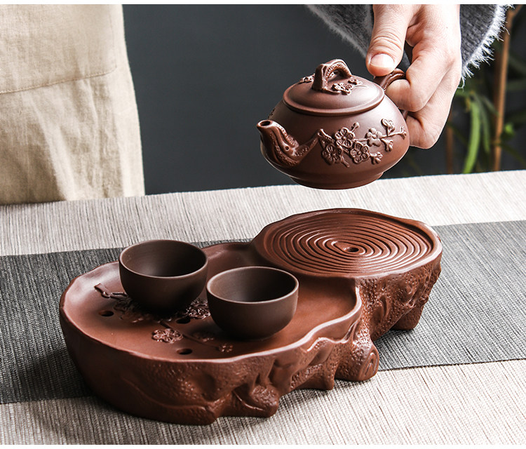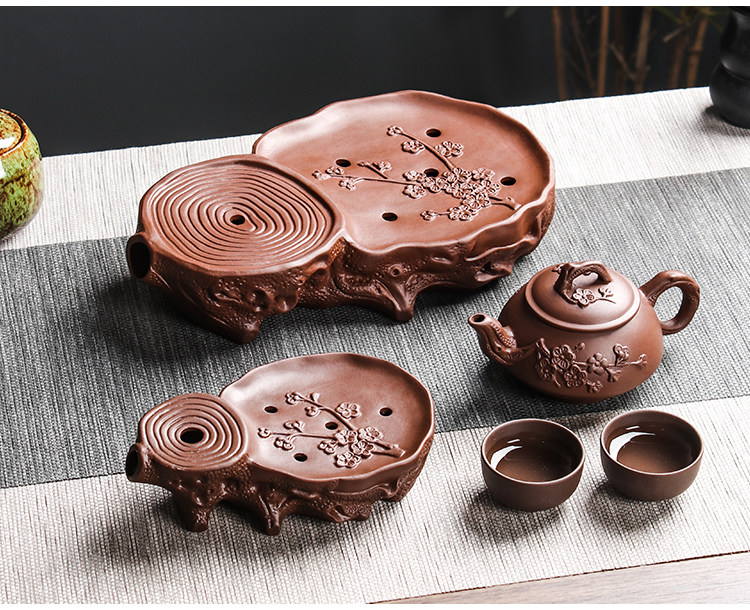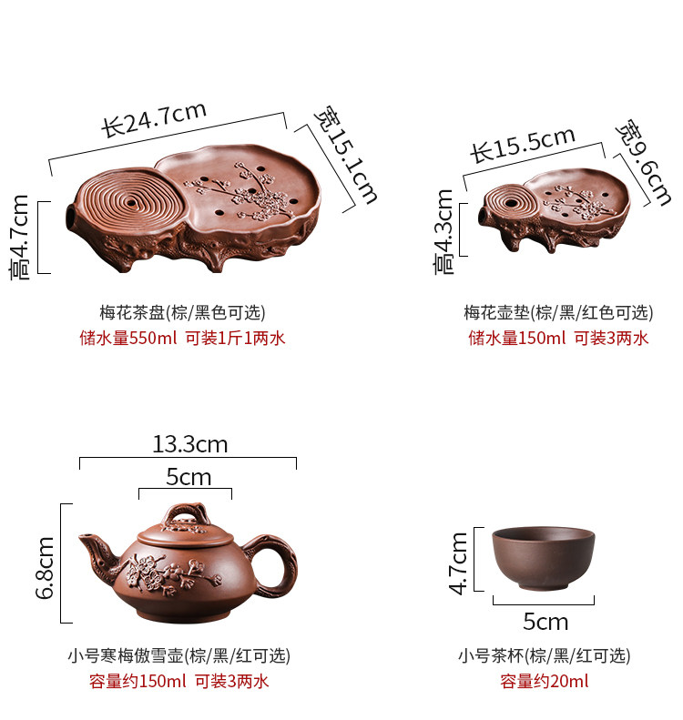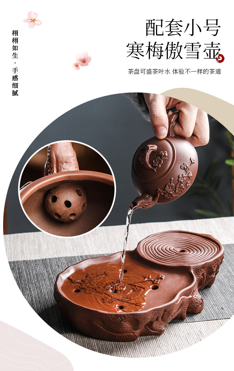 brown plum tea tray + small size hanmei aoxue pot +4 small cups