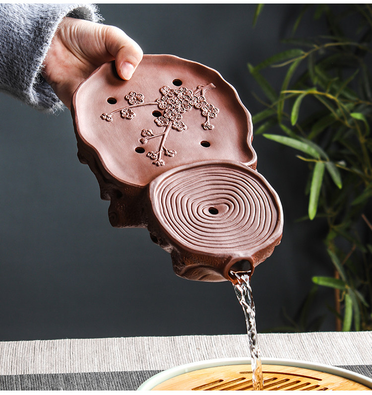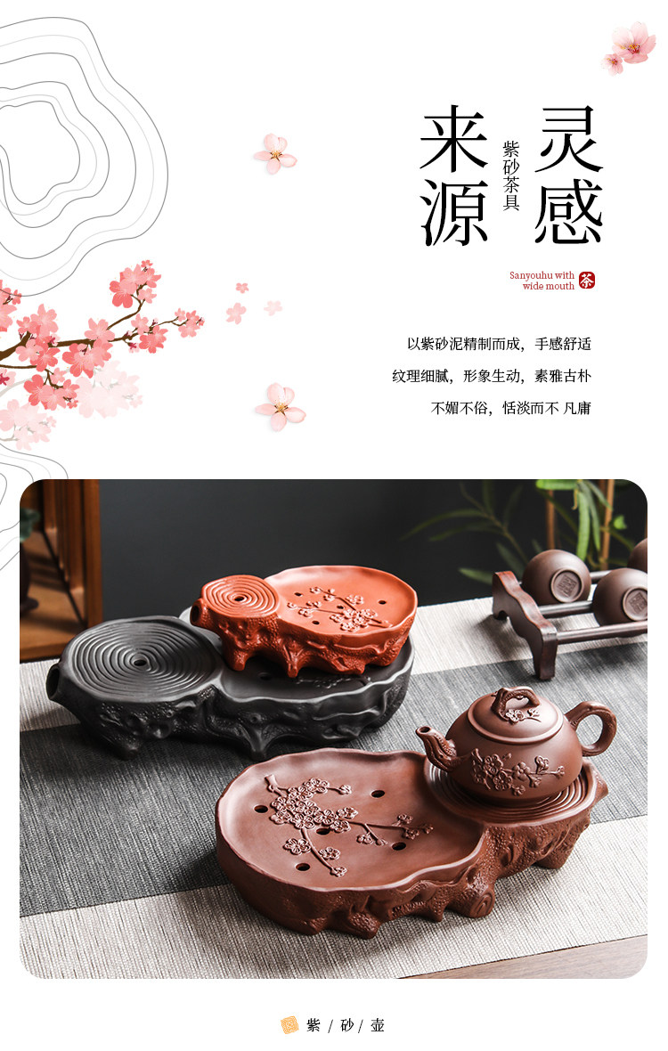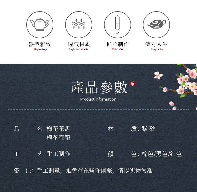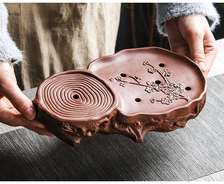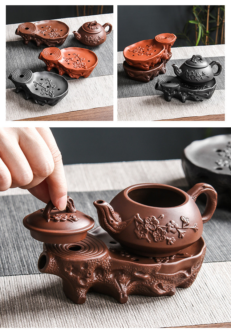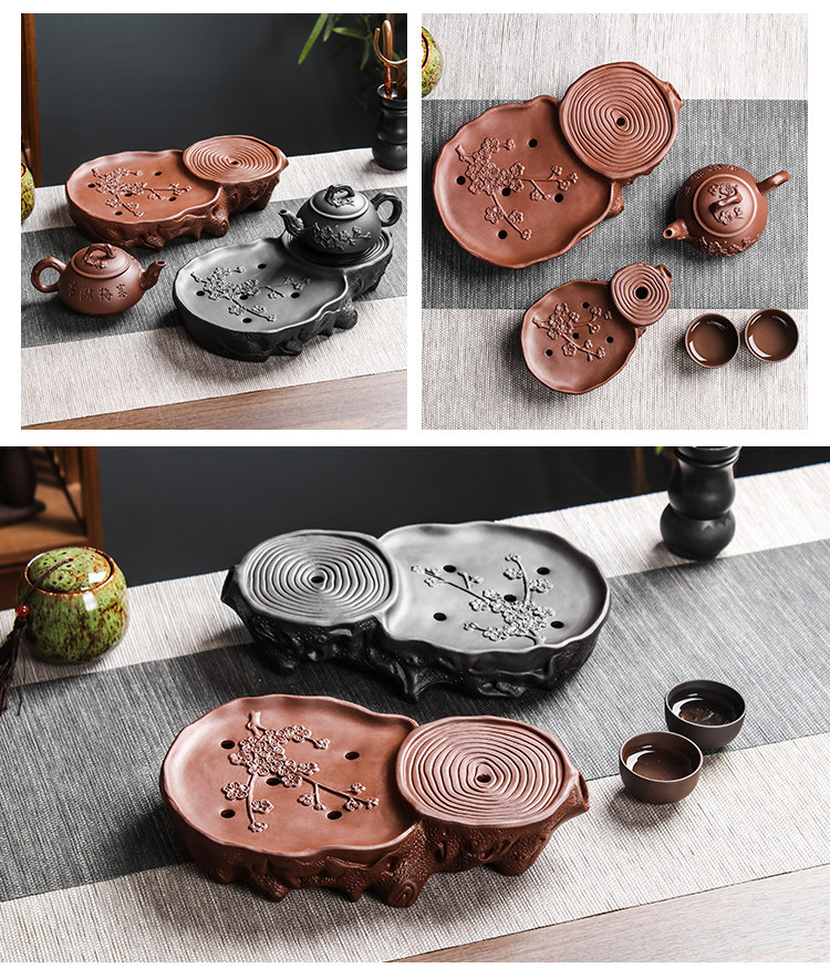brown plum tea tray + small size hanmei aoxue pot +4 small cups