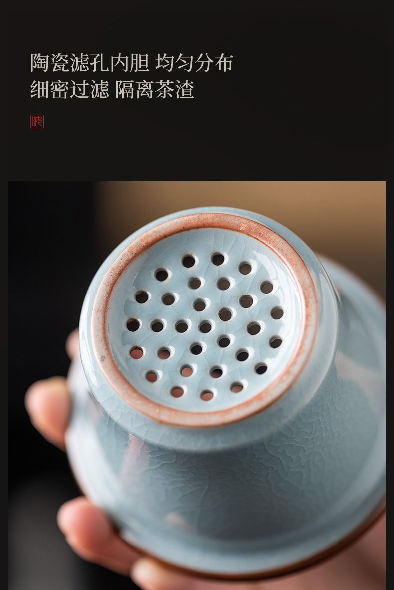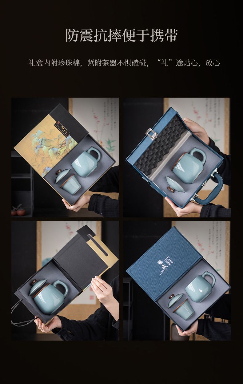 azure-lucky office cup three-piece set + blue portable leather box