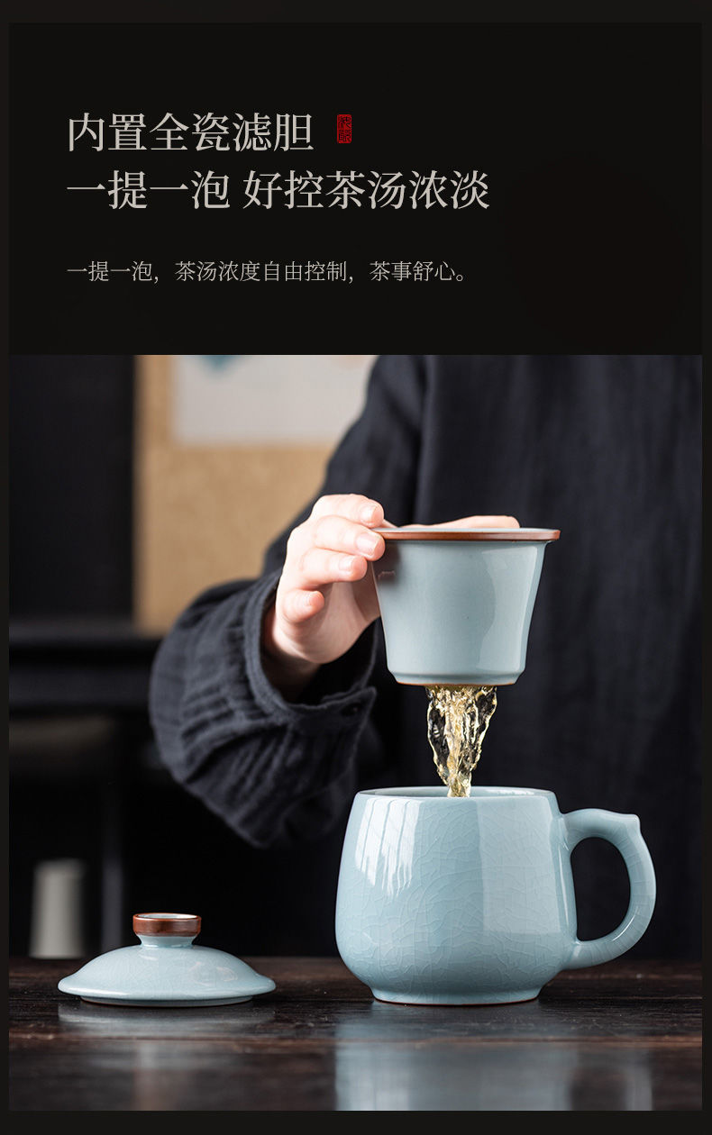 peacock green-lucky office cup three-piece set + blue portable leather box